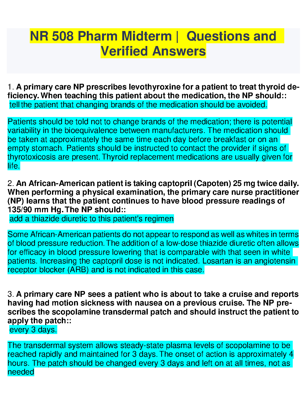 This resource provides comprehensive study materials for the NR 508 Pharm Midterm exam, covering key concepts and providing verified answers to ensure your success on your first attempt and avoid any resits.