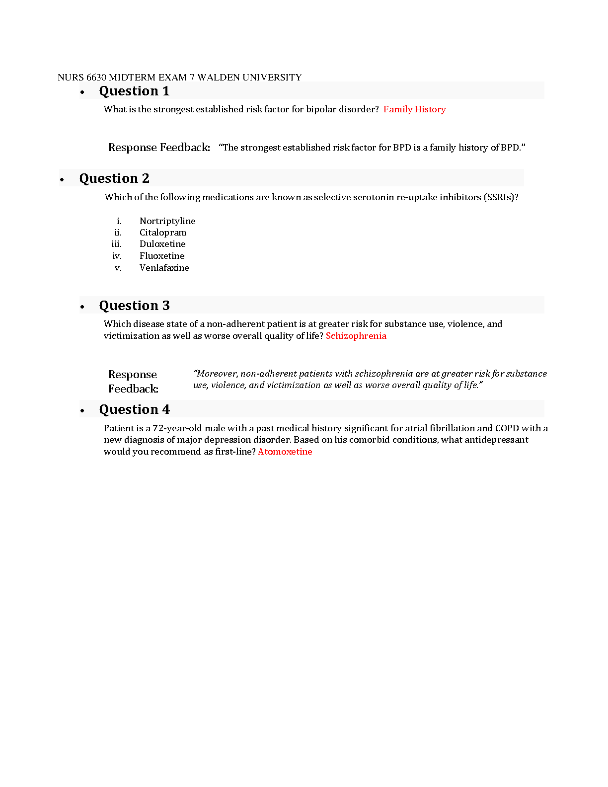NURS 6630 Midterm Exam 7 Walden University Questions and Answers: Ace Your Exam in 2024/2025 With This Comprehensive Guide