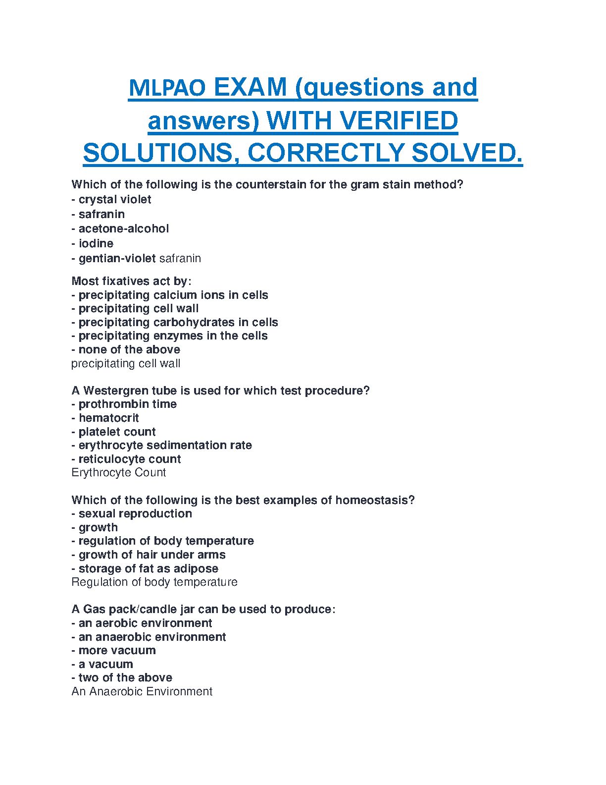 MLPAO Exam (questions and answers) with Verified Solutions, Correctly Solved