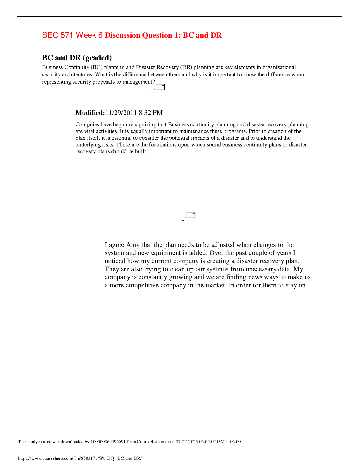 SEC 571 Week 6 Discussion Question 1: BC and DR