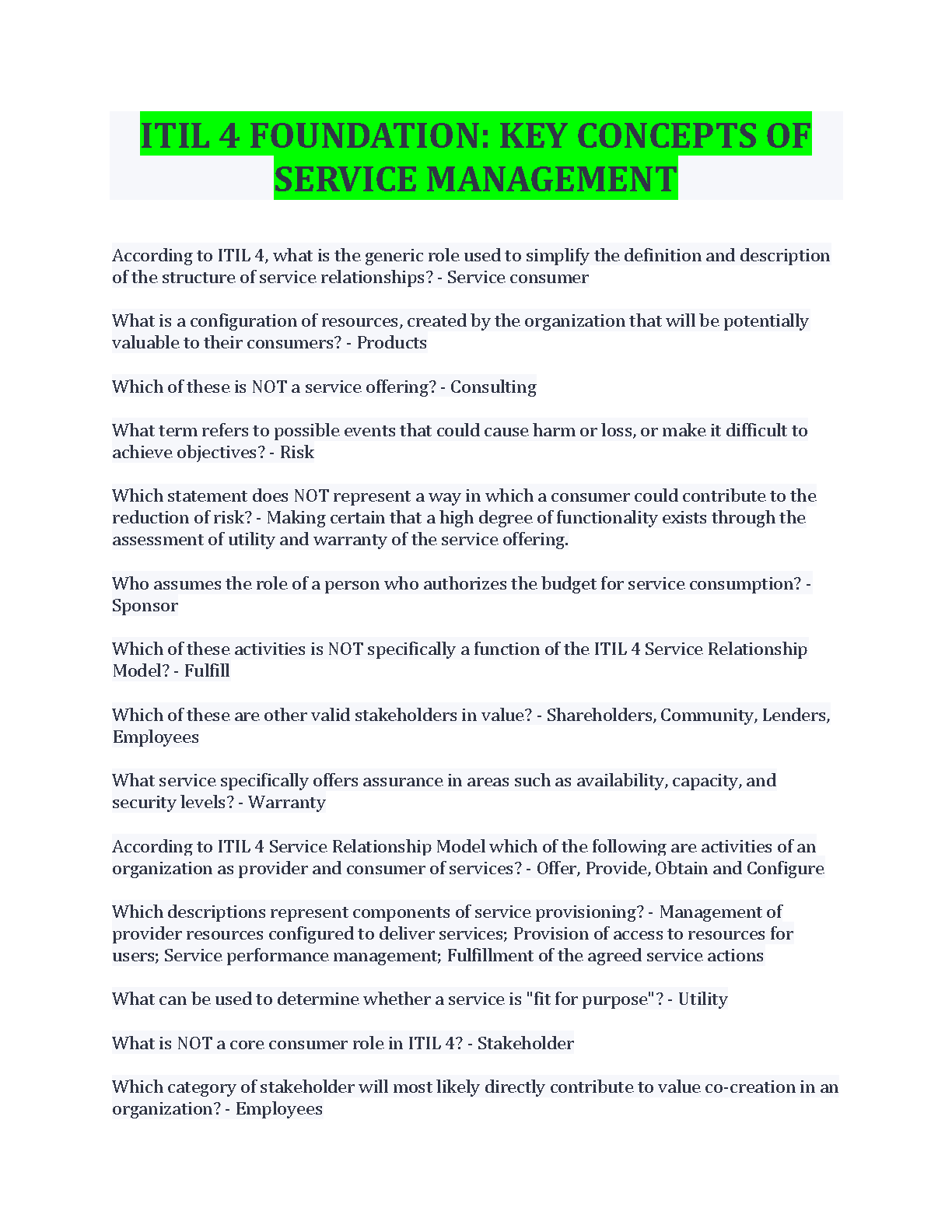 ITIL 4 Foundation Part 2 QUESTIONS AND CORRECT ANSWERS LATEST REVIEW. DOWNLOAD on www.hackedexams.com INSTANTLY.