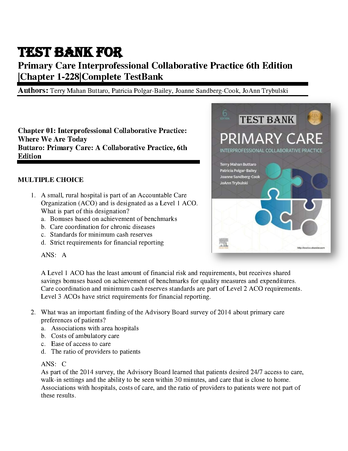 Primary Care: A Collaborative Practice, 6th Edition Test Bank by Terry Mahan Buttarro, Patricia Polgar-Bailey, Joanne Sandberg-Cook, JoAnn Trybulski