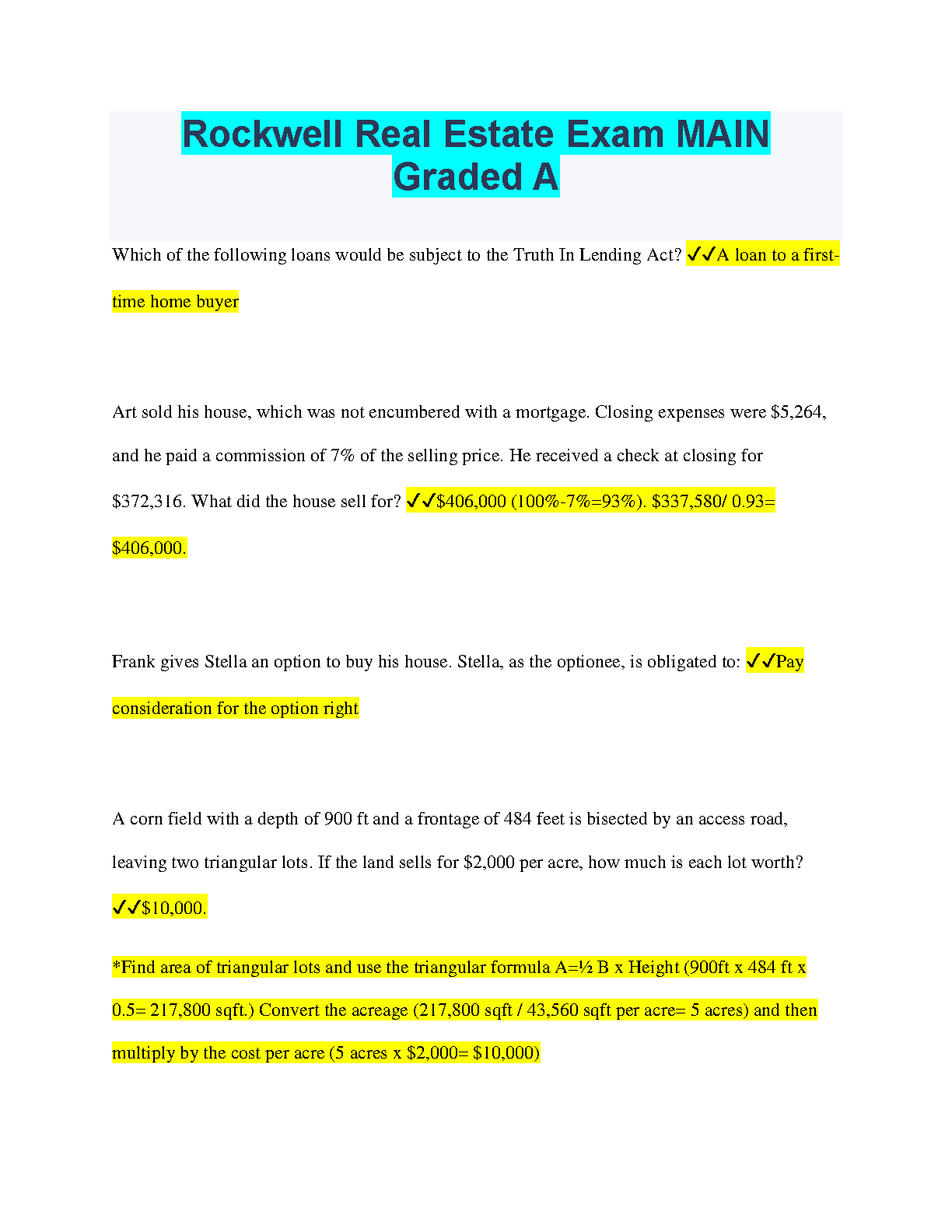 Rockwell Real Estate Exam MAIN Graded A: Pass Your Exam on the First Attempt!