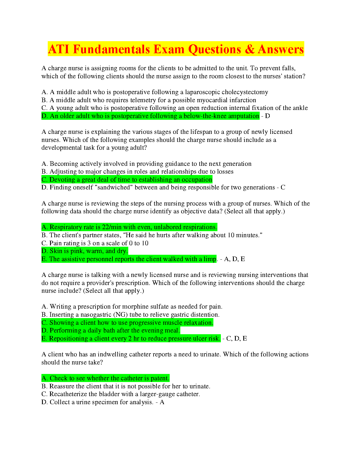 ATI Fundamentals Exam Questions & Answers for 2024/2025 - Pass Your Exam On The First Attempt