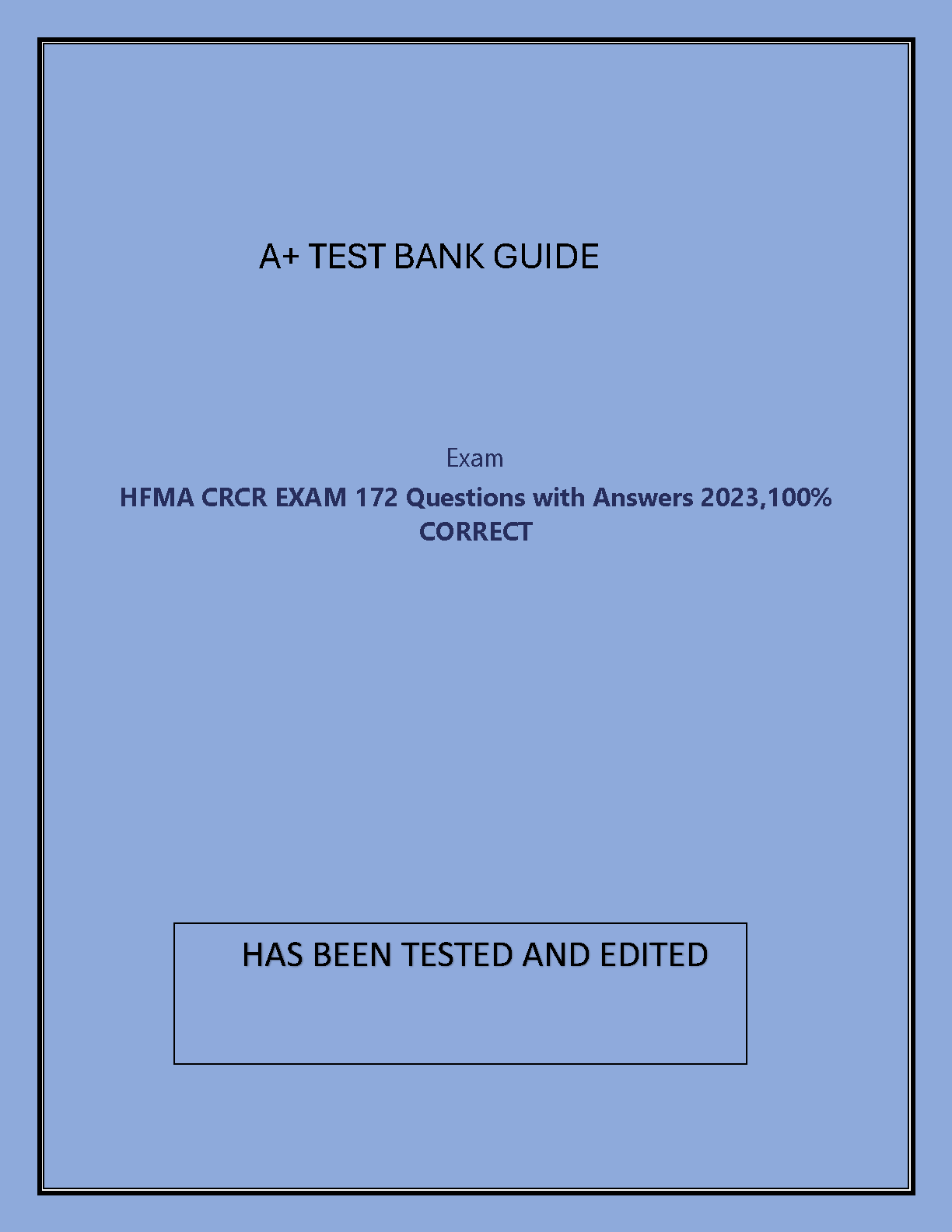 HFMA CRCR Exam 2023 Test Bank Guide with 172 Questions and Answers by [Complete Author Name]