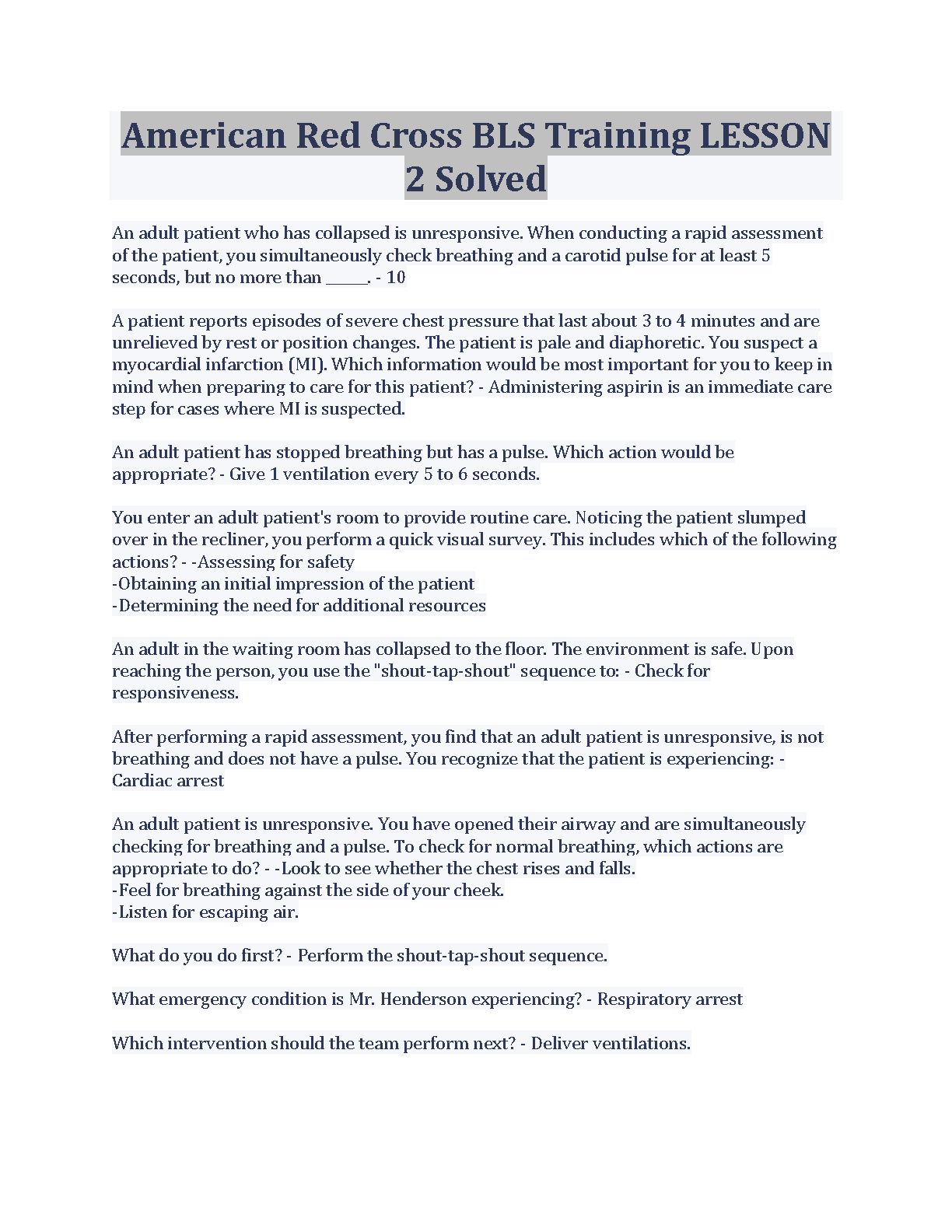 American Red Cross BLS Training Lesson 2 Solved: A Comprehensive Guide to Passing Exams on Your First Attempt