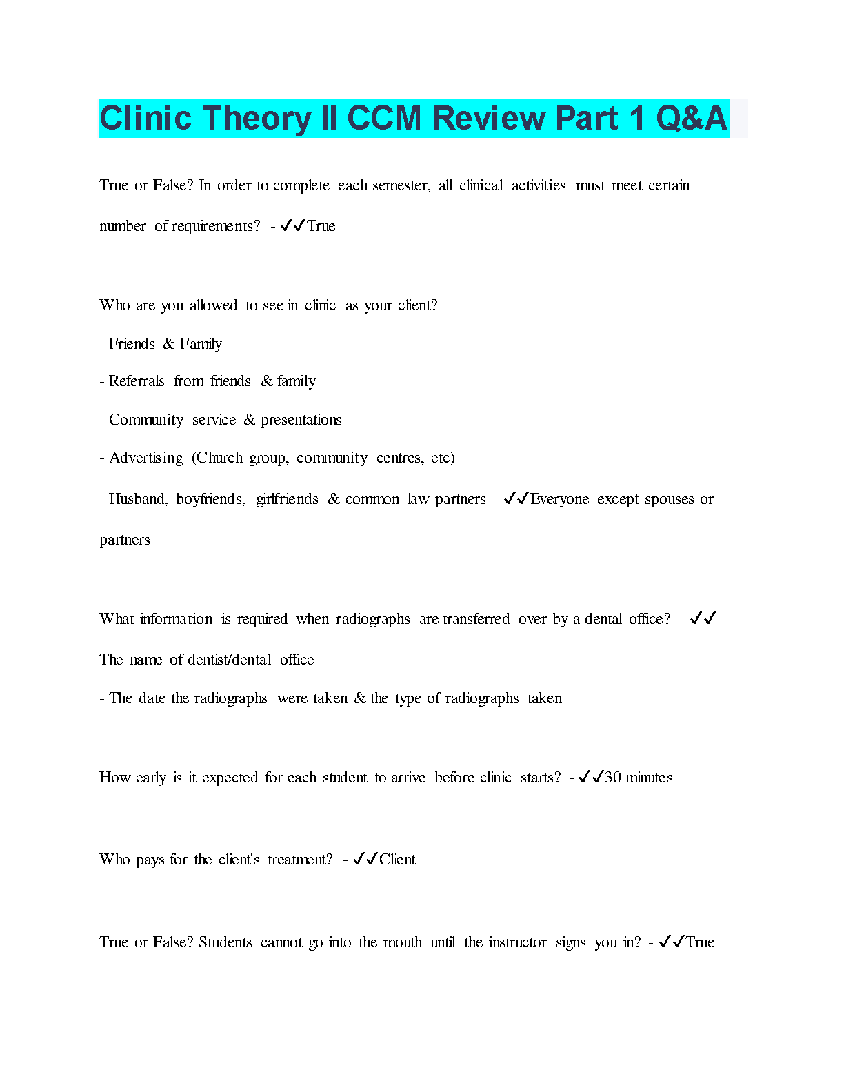 Clinic Theory II CCM Review Part 1 Q&A: Exam Success Guide for 2024/2025