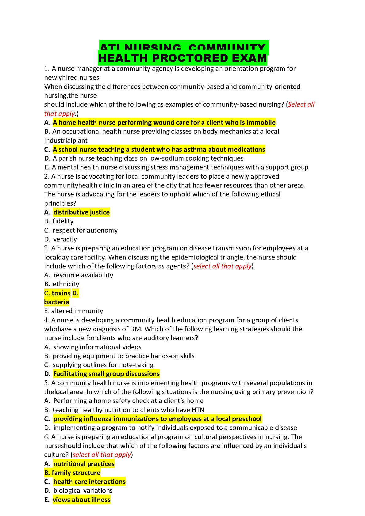 ATI Nursing Community Health Proctored Exam 2024/2025 Edition - Ace Your Exam First Attempt - No Resits!