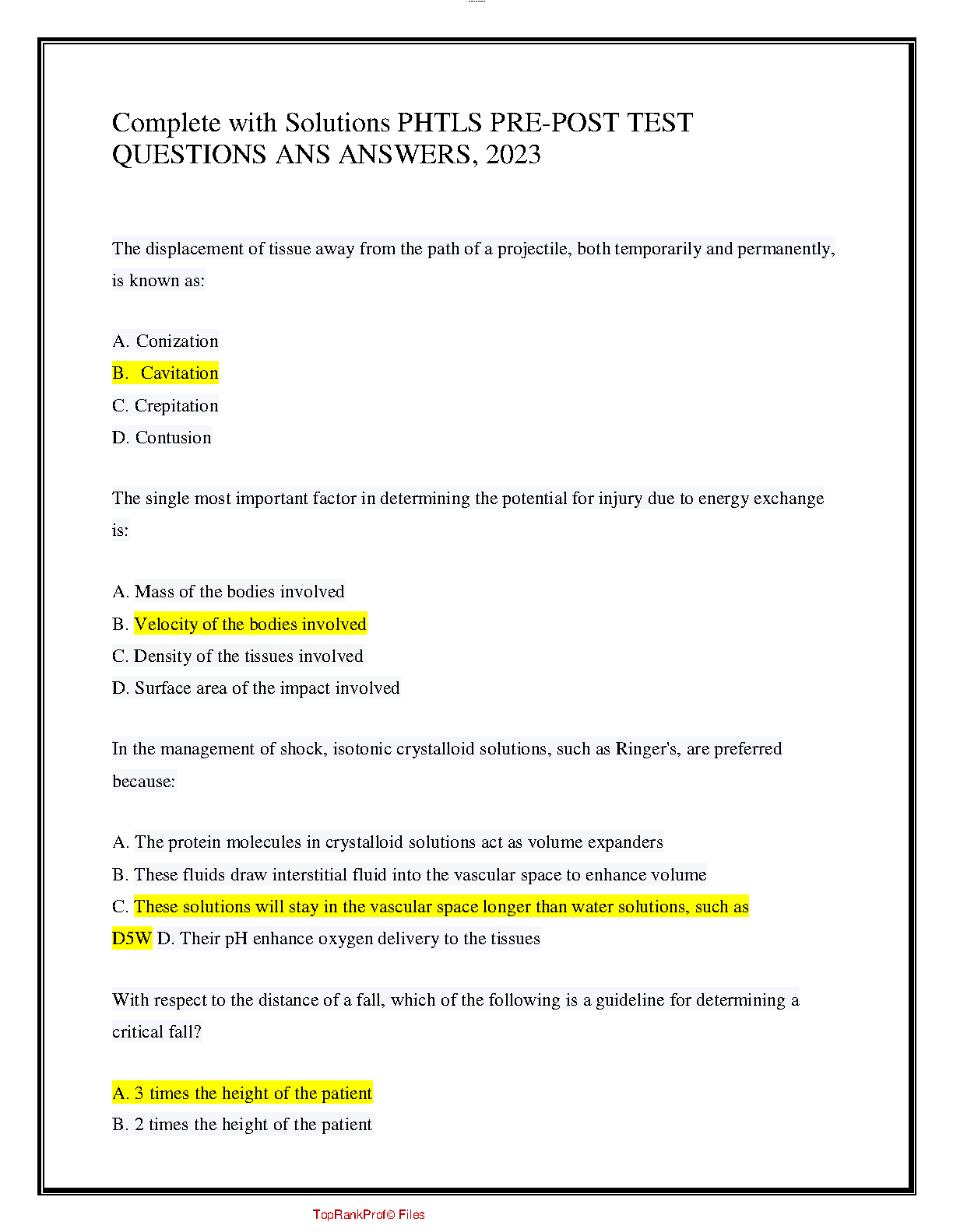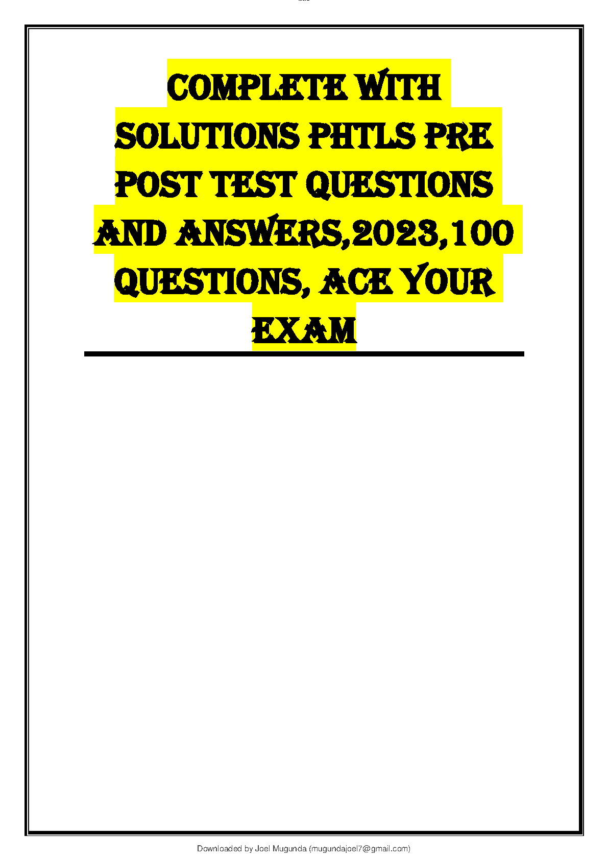PHTLS Pre-Post Test Questions and Answers, 2023 Edition, by Joel Mugunda