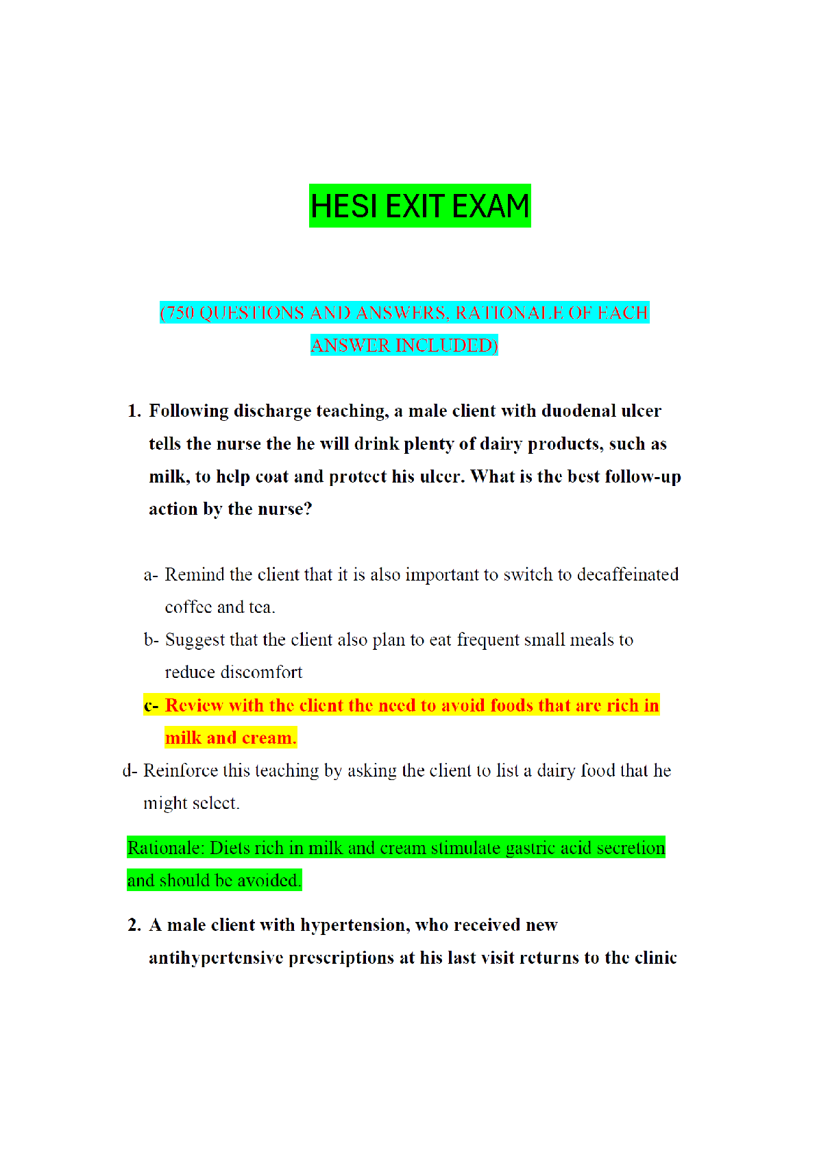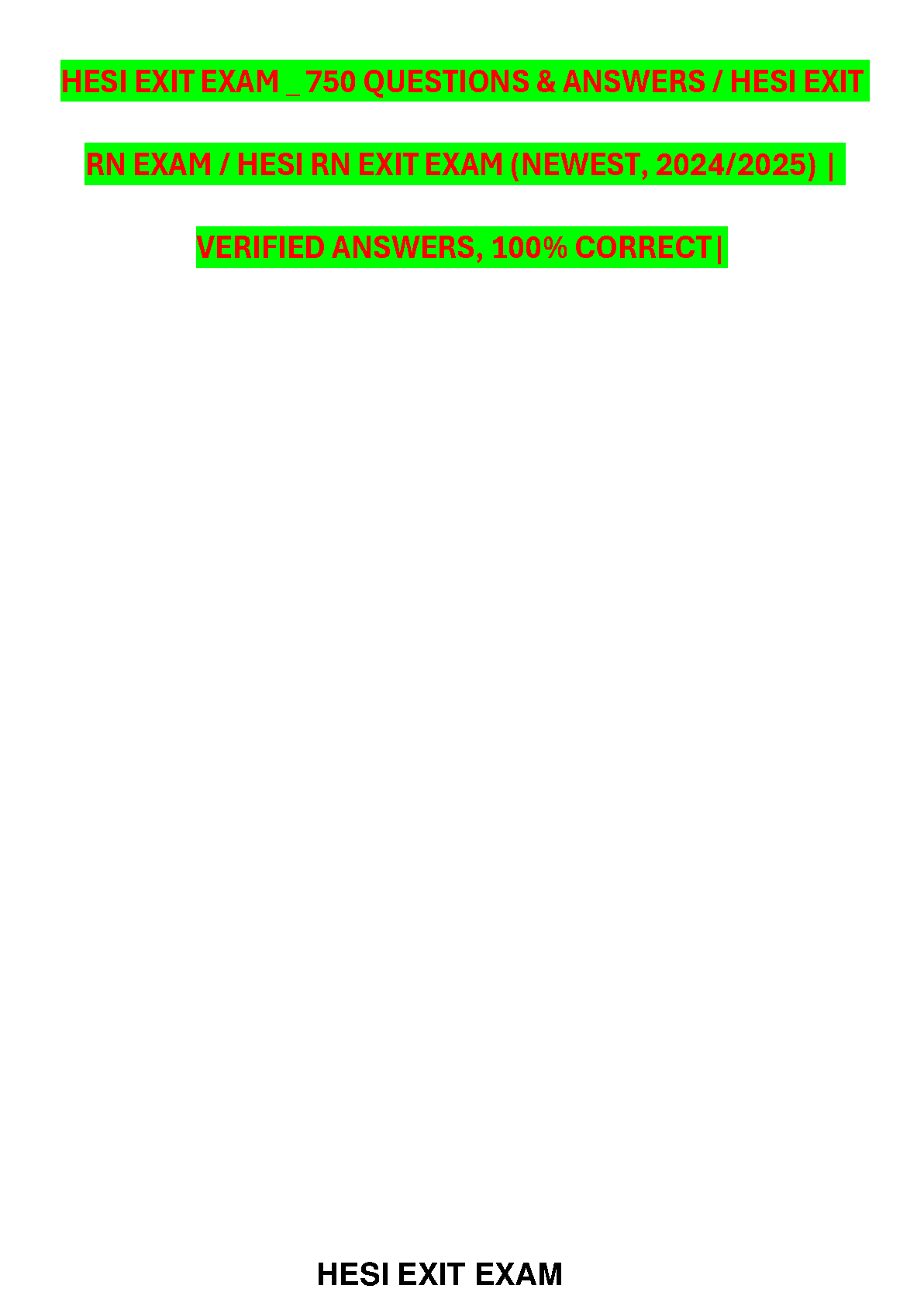 HESI Exit Exam 750 Questions & Answers - Newest Edition for 2024/2025