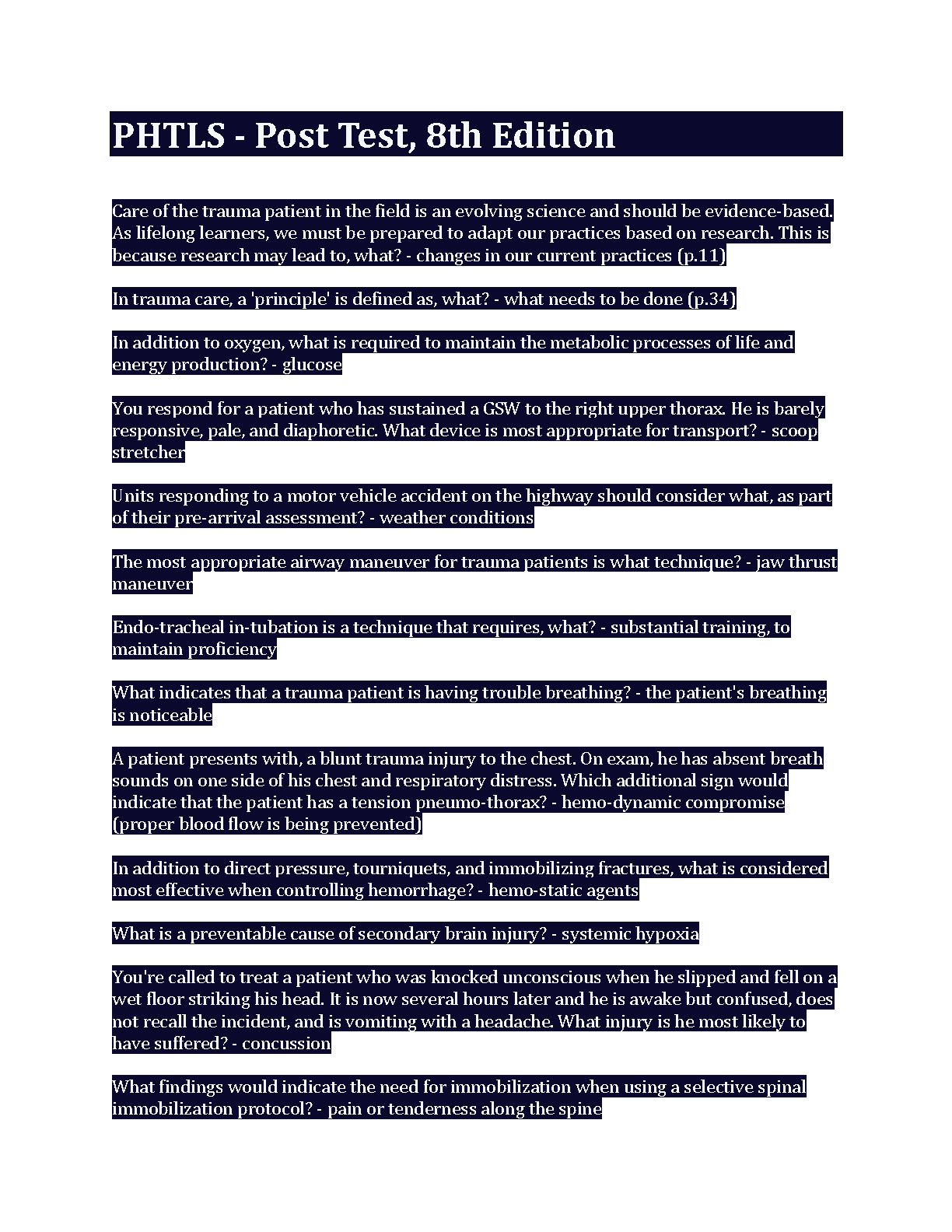 PHTLS - Post Test, 8th Edition by American College of Surgeons Committee on Trauma