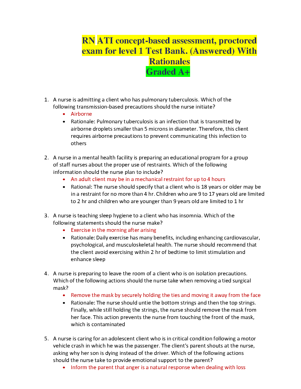 ATI RN Concept-Based Assessment, Proctored Exam for Level 1 Test Bank (Answered) with Rationales, 2024-2025 Edition, by Linda Anne Silvestri, et al.
