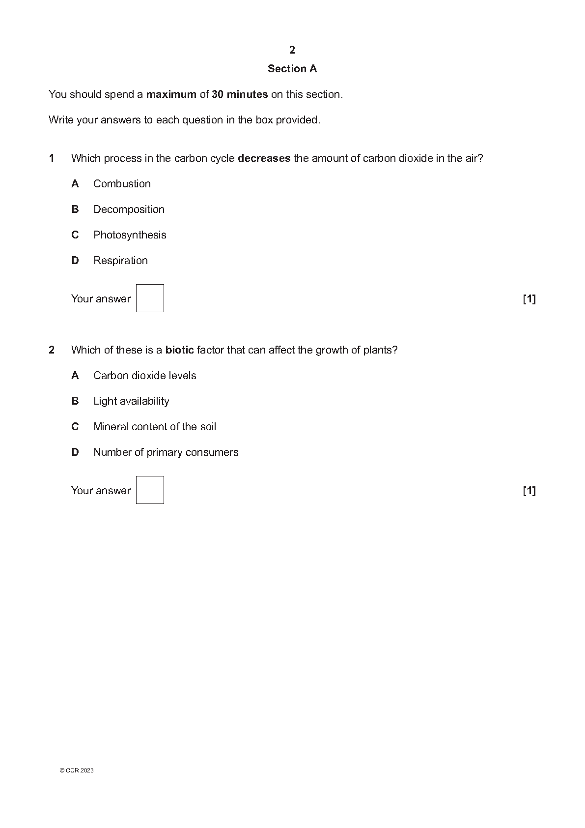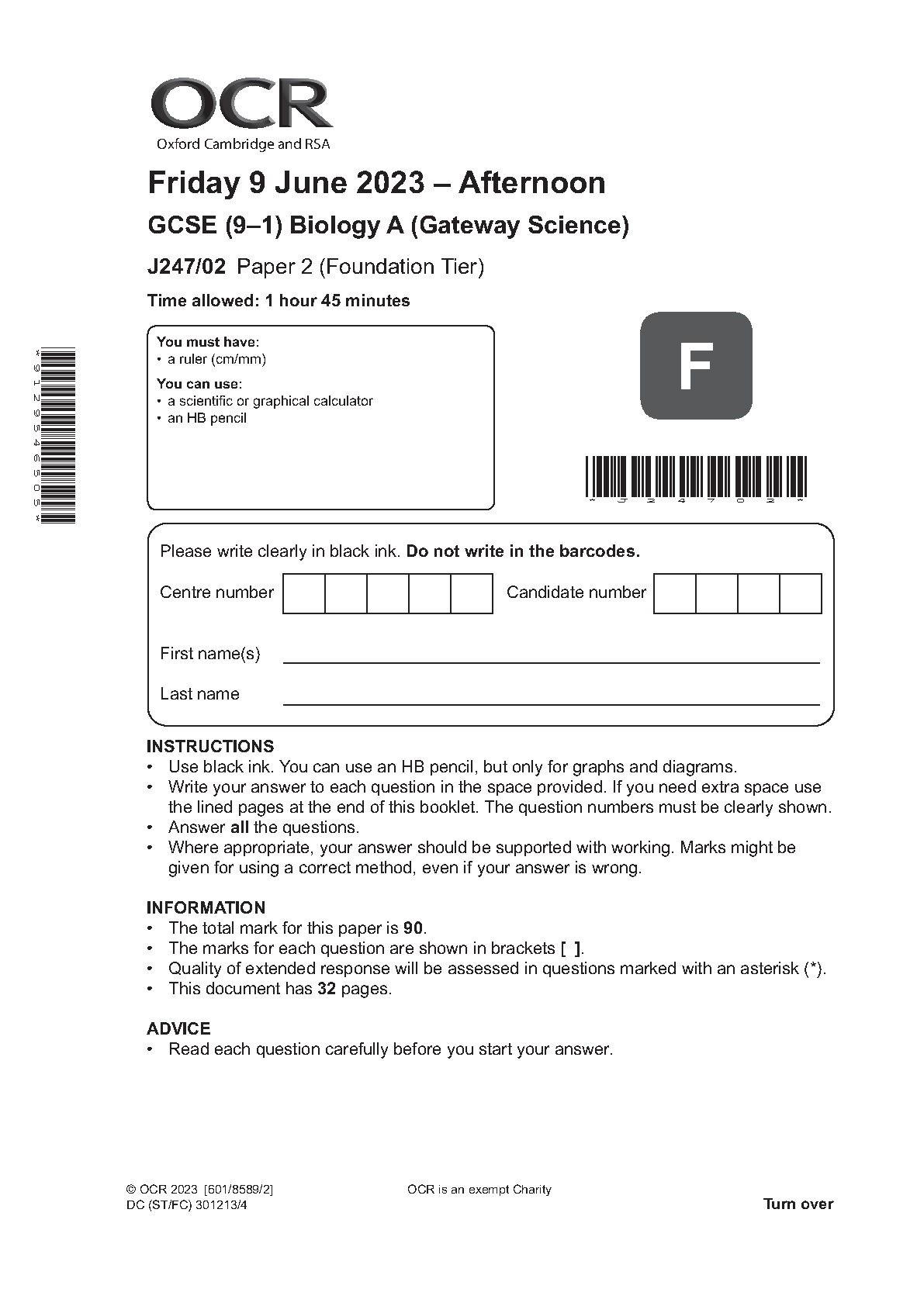 OCR GCSE (9-1) Biology A (Gateway Science) - J247/02 Paper 2 (Foundation Tier) - 2023 Edition - Exam Success Guaranteed - Ace Your Exams on the First Attempt - Latest Edition - 2024/2025