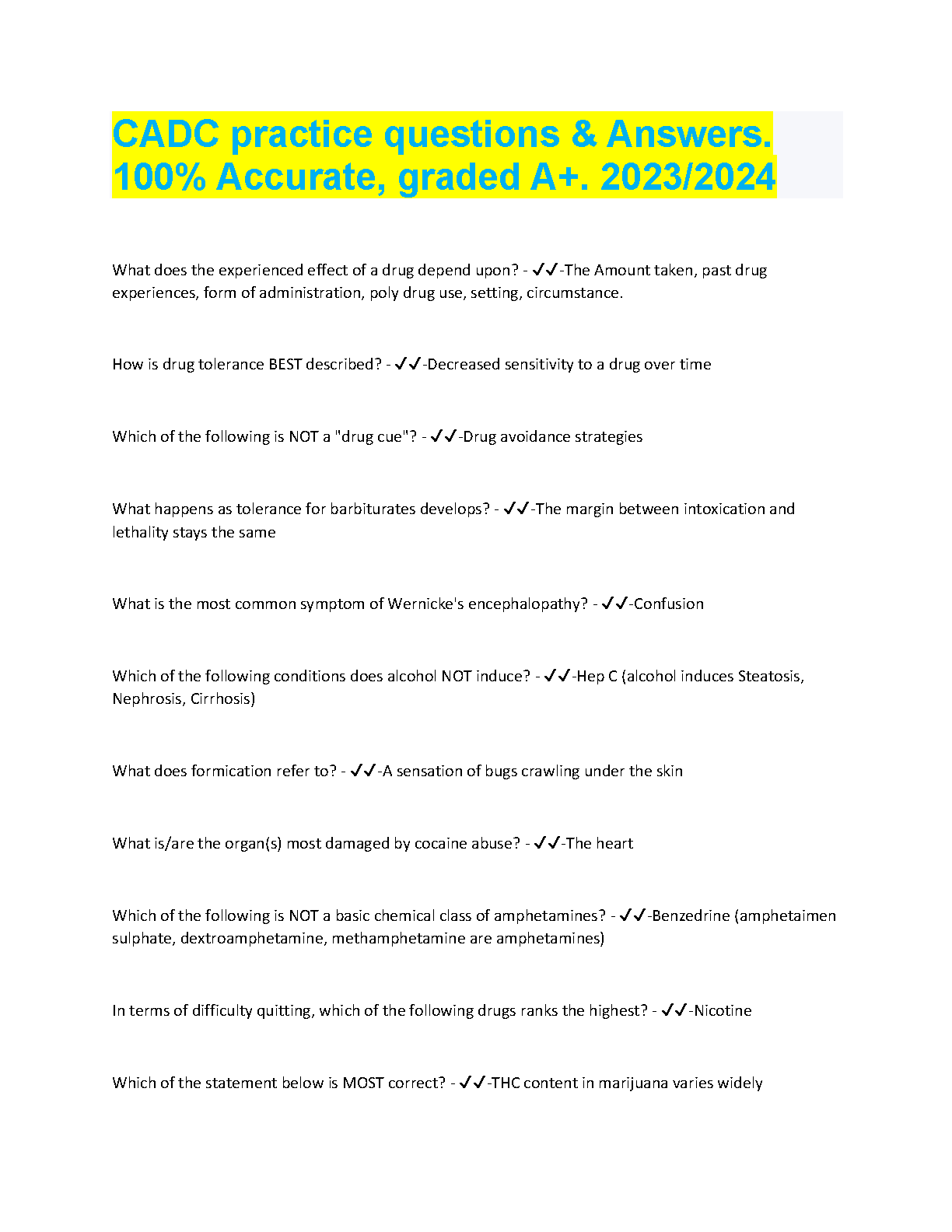 CADC Practice Questions & Answers 2023/2024 Edition by Authors