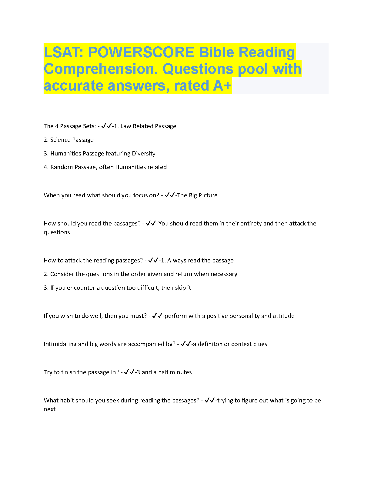 LSAT: POWERSCORE Bible Reading Comprehension. Questions pool with accurate answers, rated A