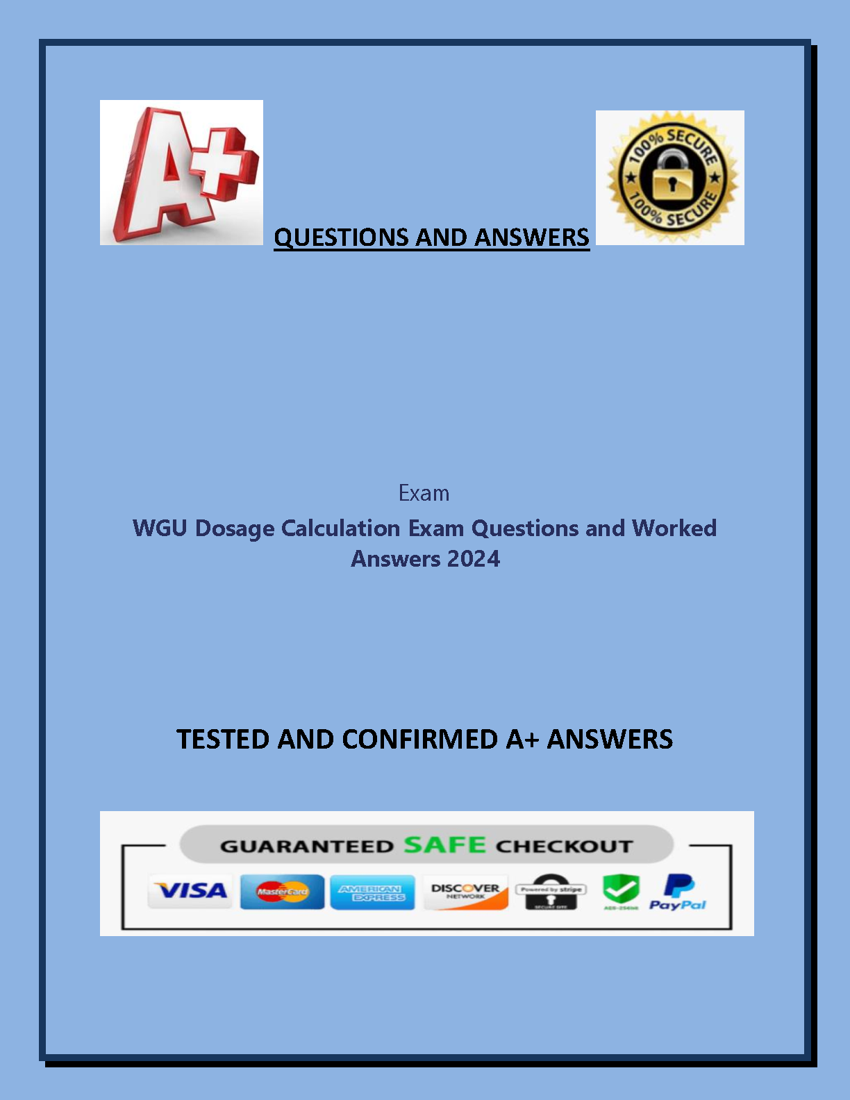 WGU C214 Dosage Calculation Exam Questions and Answers 2024/2025 - Pass Your Exam on the First Attempt