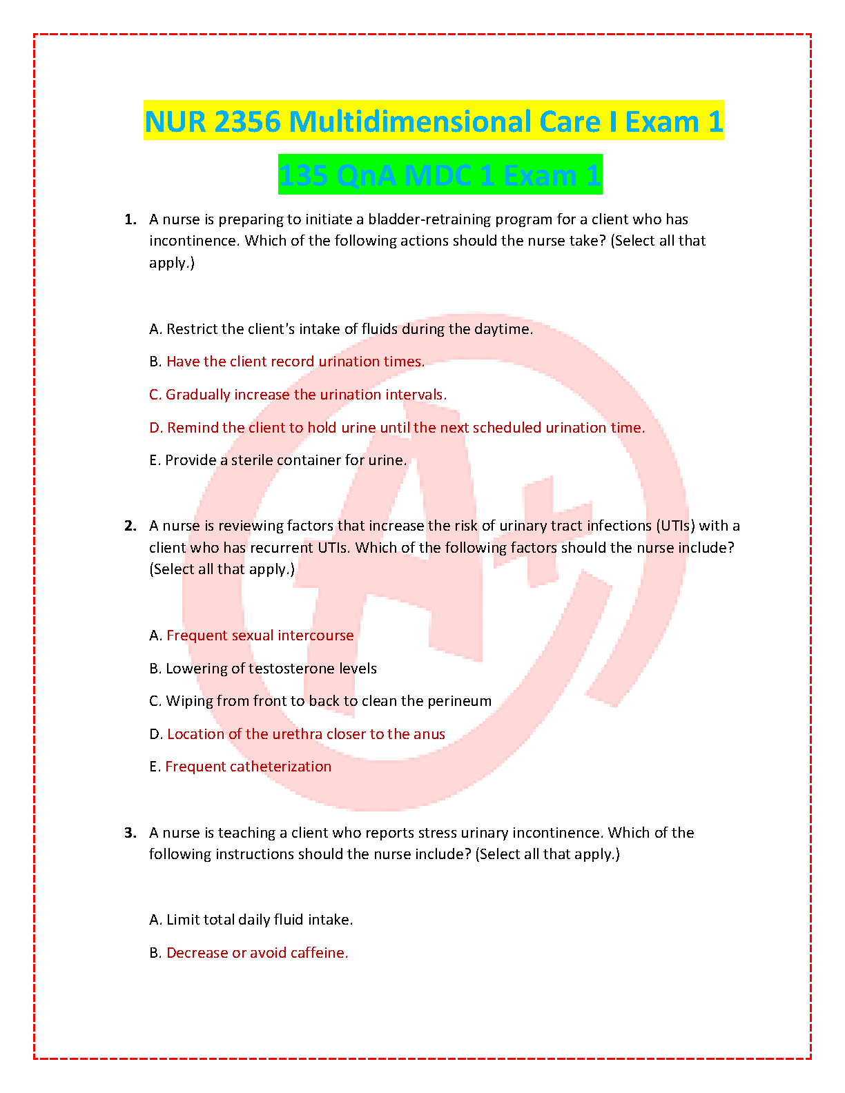 NUR 2356 Multidimensional Care I Exam 1 - 135 Q&A MDC 1 Exam 1 - By Authors