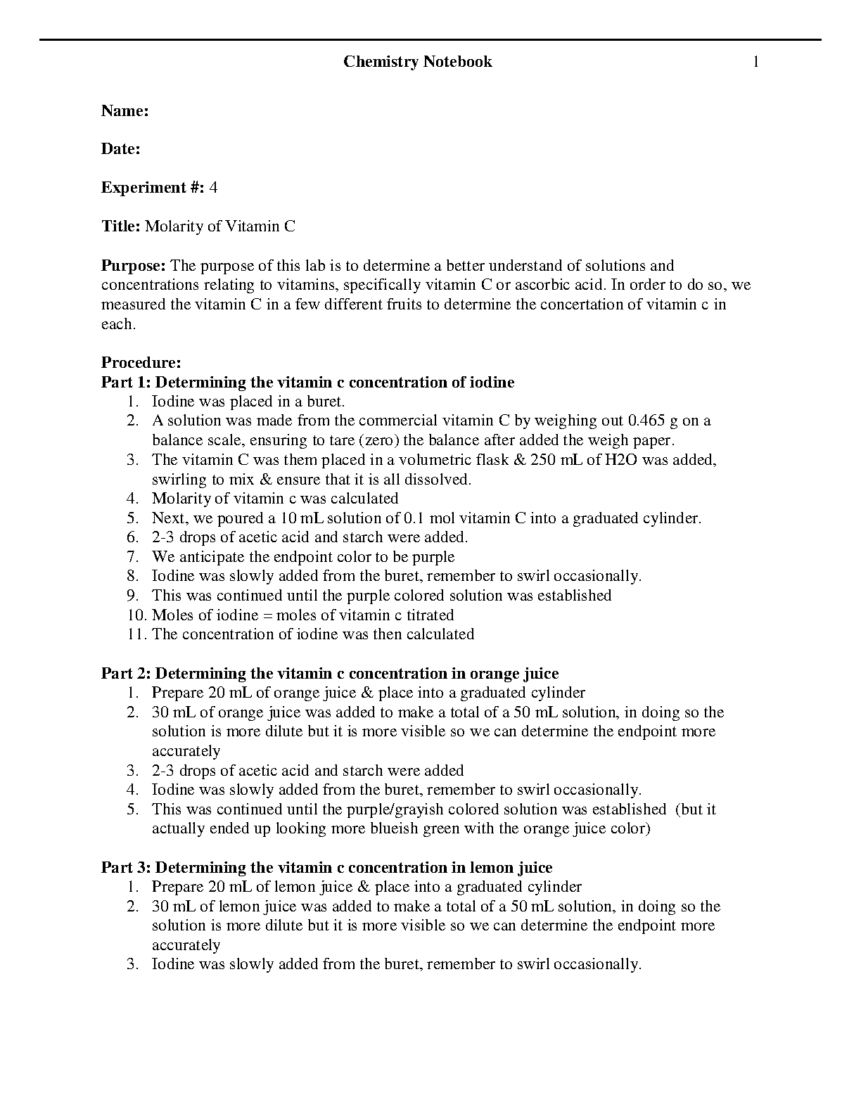 Molarity of Vitamin C Experiment: Determining the Vitamin C Concentration in Fruit Juices - 2024/2025 Edition - A Guide to Passing Exams on the First Attempt