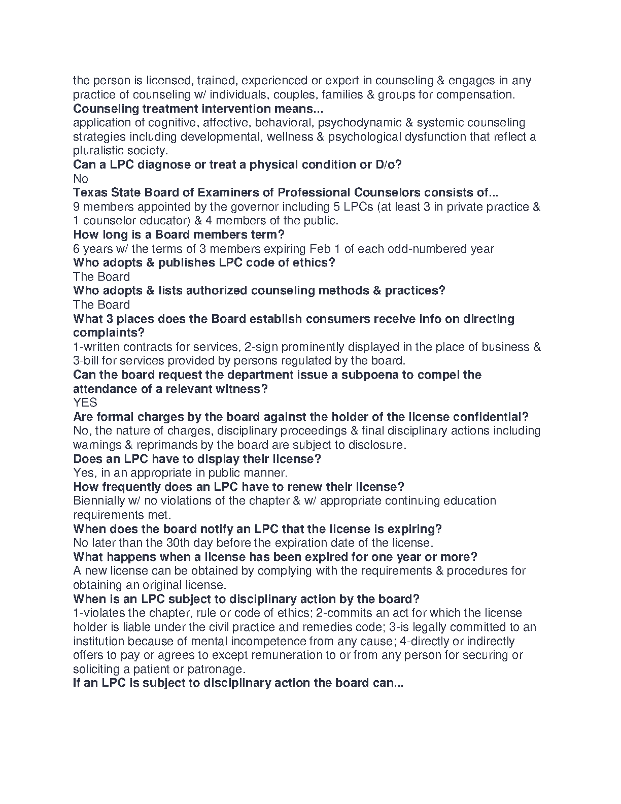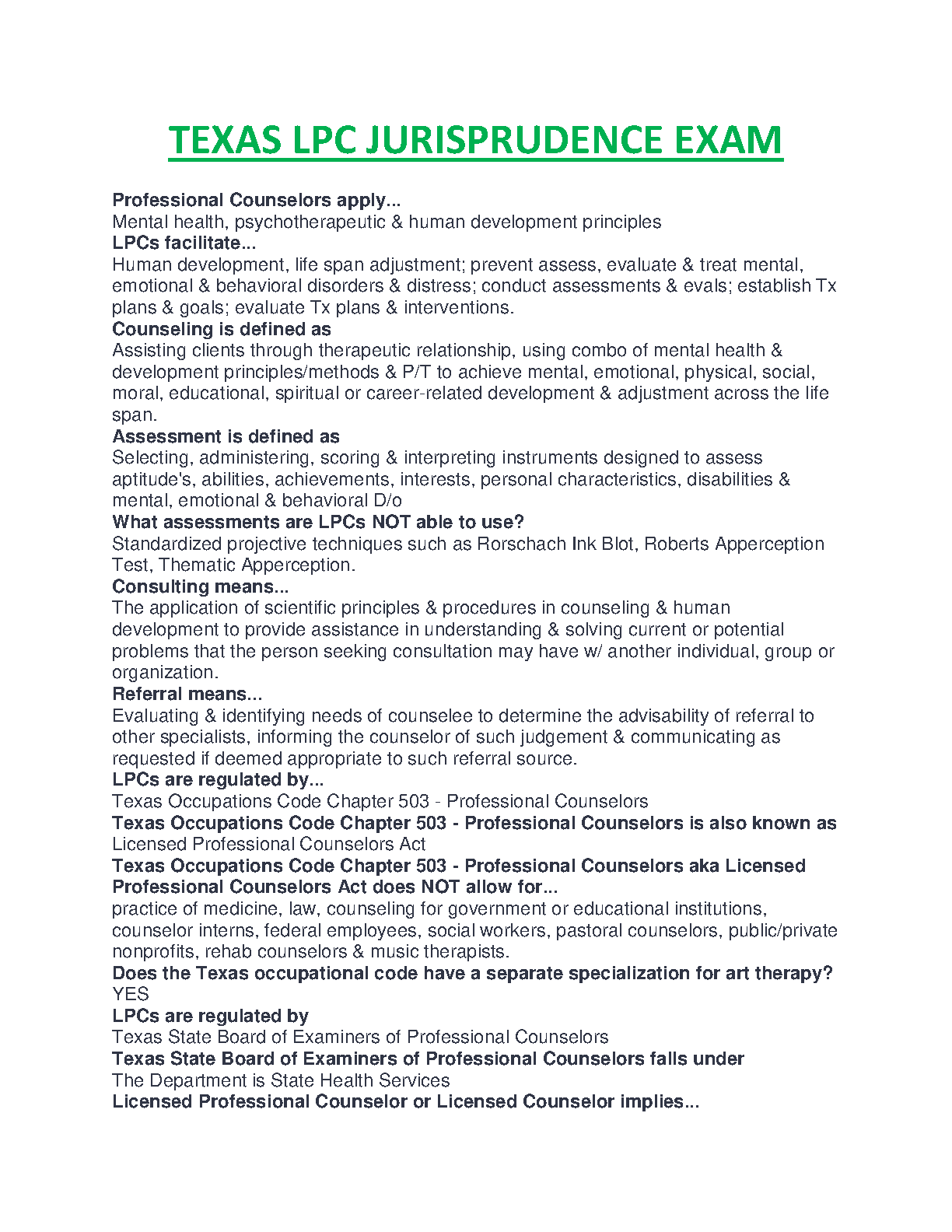 This comprehensive study guide is tailored for aspiring Licensed Professional Counselors (LPCs) in Texas. Packed with detailed information on topics ranging from mental health principles to legal regulations, this resource helps you master the crucial knowledge needed to excel on the Texas LPC Jurisprudence Exam. Our guide is designed to ensure you understand the principles of counseling, ethical practices, and Texas-specific licensing requirements, giving you the confidence to pass your exam and embark on your career.