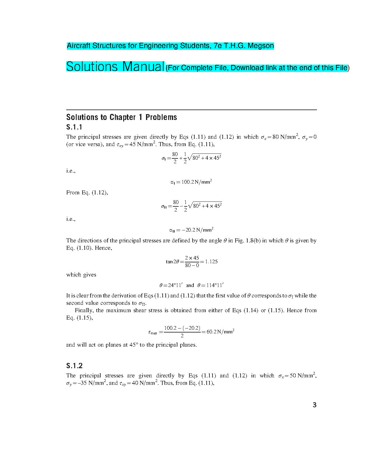Unlocking the secrets to success in Aircraft Structures with the comprehensive Solutions Manual for the 7th edition of "Aircraft Structures for Engineering Students" by T.H.G. Megson. This resource goes beyond textbook explanations, providing detailed solutions, step-by-step explanations, and insightful guidance to help you grasp the intricacies of aircraft structural analysis and design. Get ready to ace your exams and gain a deeper understanding of the subject.