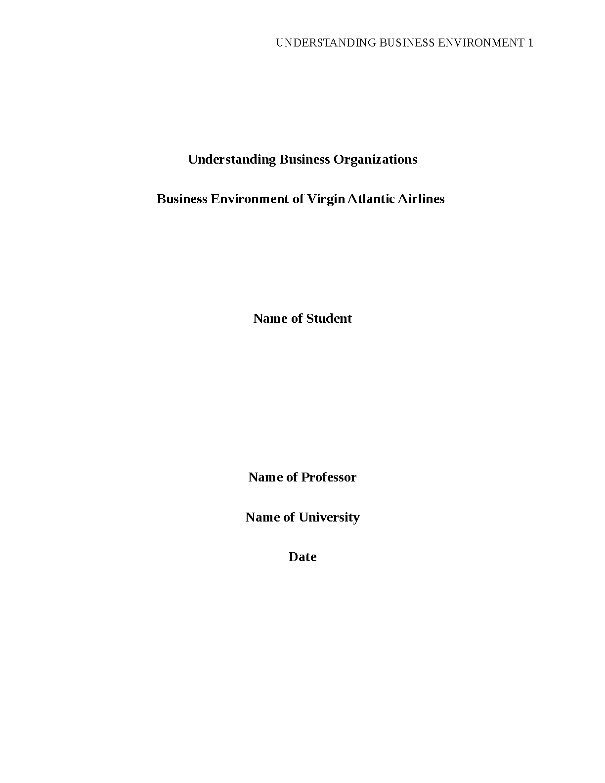 Understanding Business Organizations: Business Environment of Virgin Atlantic Airlines - 2024-2025 Edition