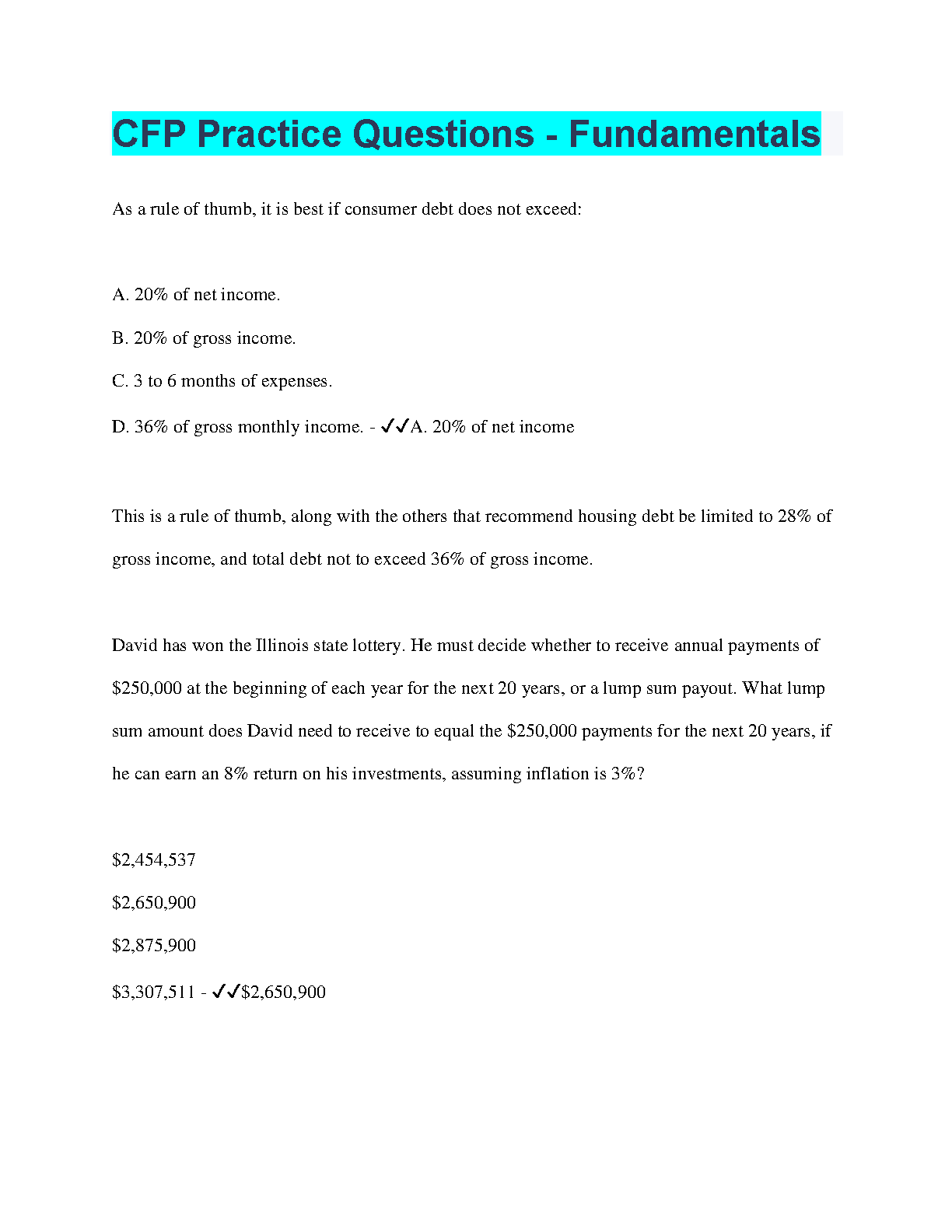 CFP Practice Questions - Fundamentals - 2024/2025 Edition - Ace Your Exam on the First Attempt