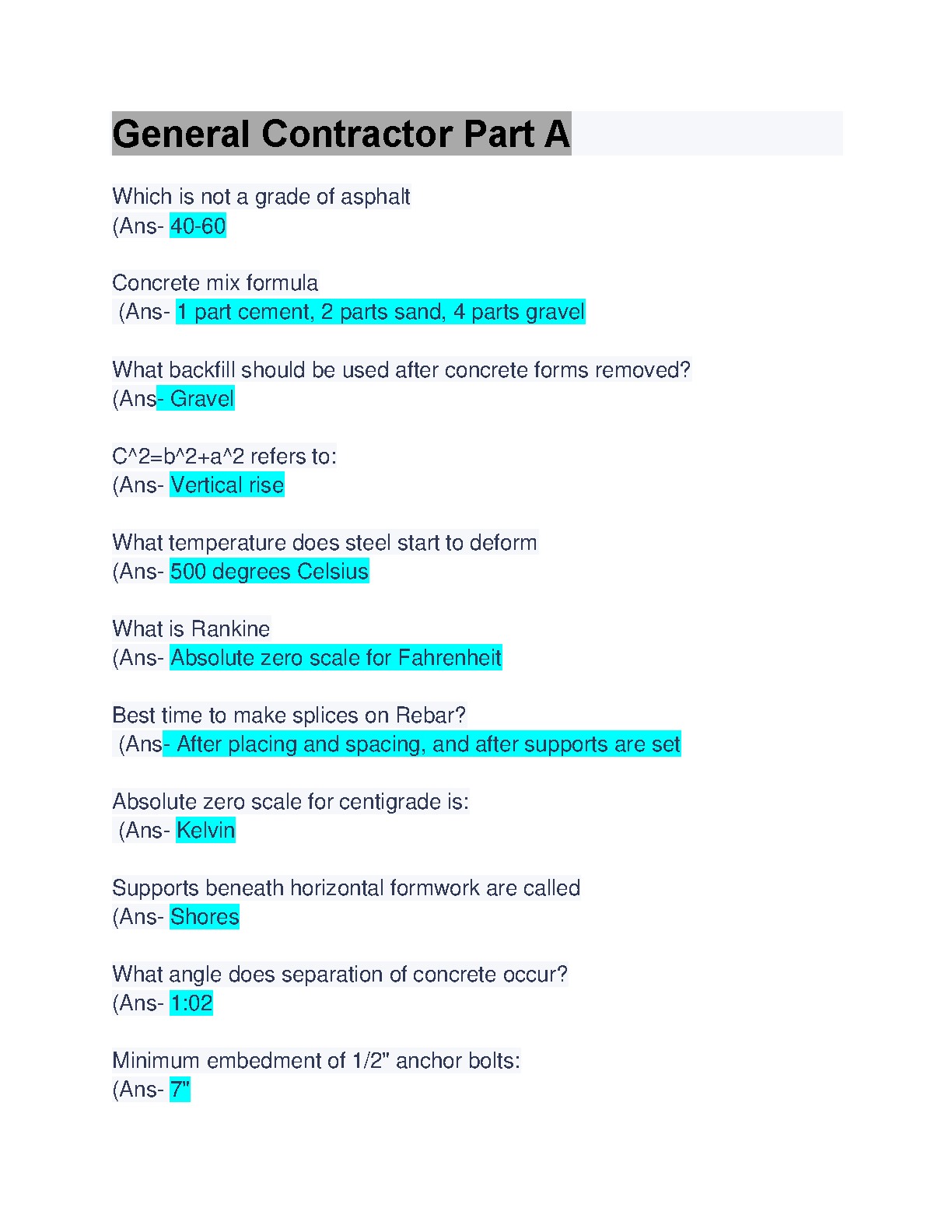 General Contractor Part A Questions and Answers - Practice Exam for First Attempt Success