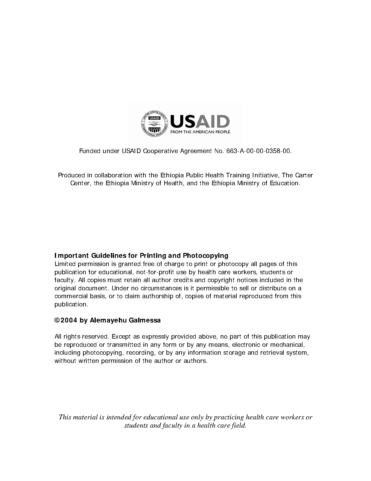 Psychiatric Nursing Lecture Notes 2004 Edition by Alemayehu Galmessa
