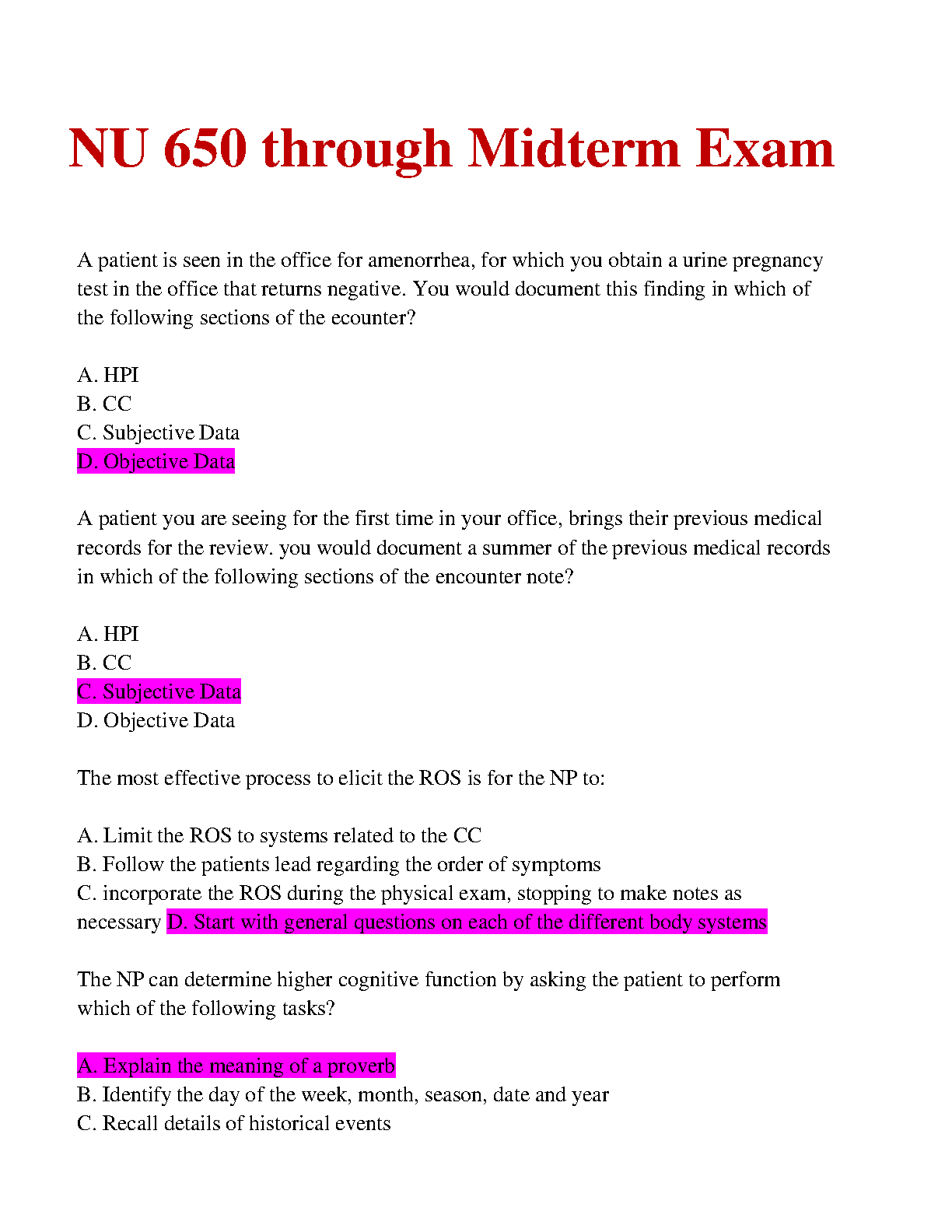 NU 650 Midterm Exam Questions and Answers 2024/2025 - Ace Your Exam on the First Attempt