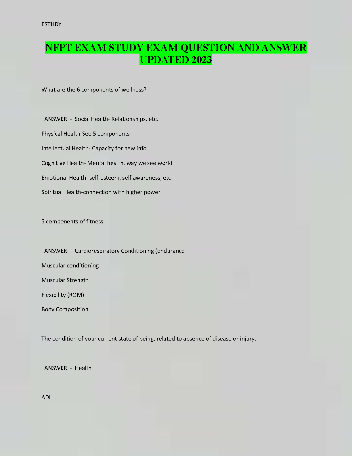 NFPT Exam Study Guide: Exam Questions and Answers (Updated 2023)