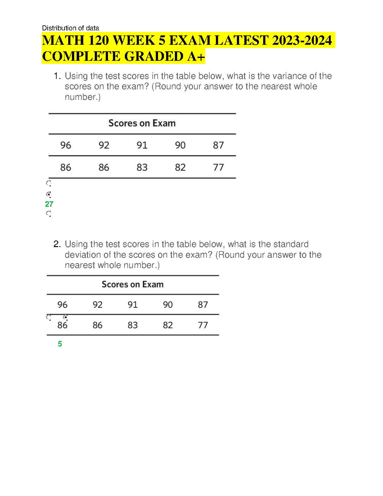 MATH 120 WEEK 5 EXAM LATEST 2023-2024 COMPLETE GRADED A