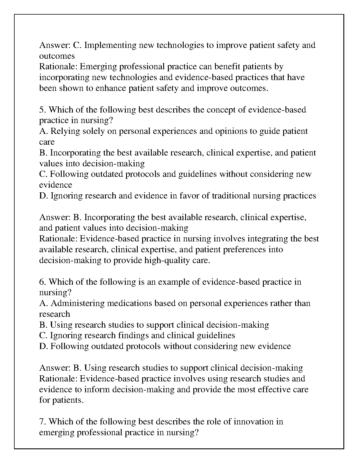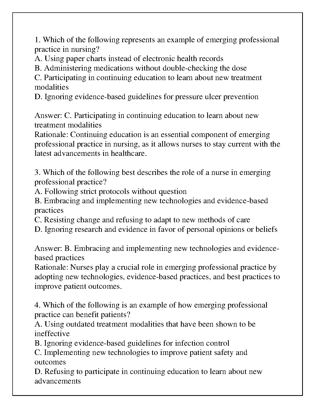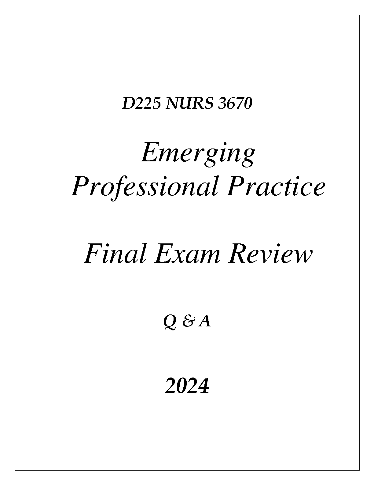 Emerging Professional Practice Final Exam Review Q&A 2024 - by Susan M. Kross, Kathleen A. Moody, Ann Marie Duell