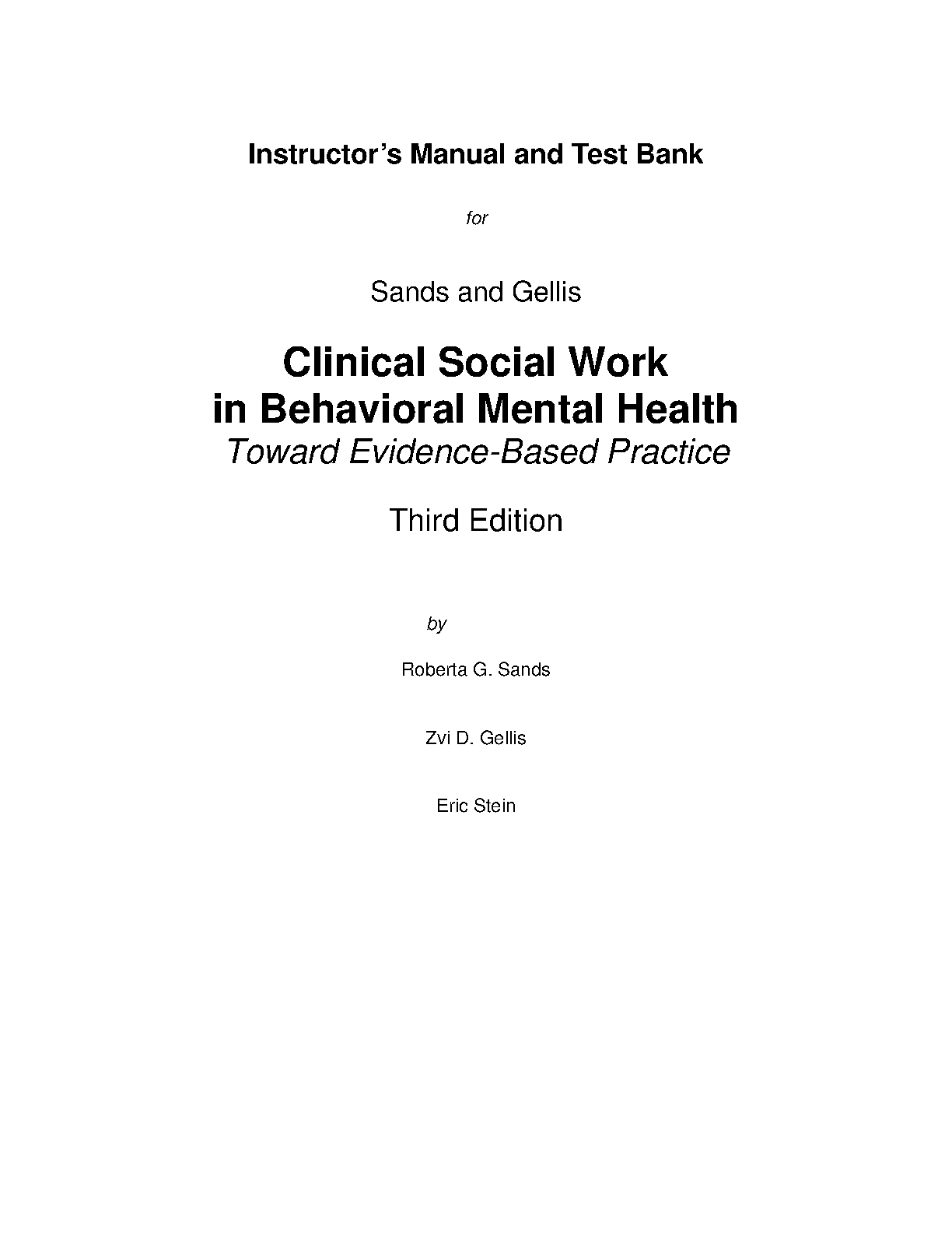 Download the complete Instructor's Manual and Test Bank for Clinical Social Work in Behavioral Mental Health: Toward Evidence-Based Practice, 3rd Edition. Ace your exams with this essential resource.