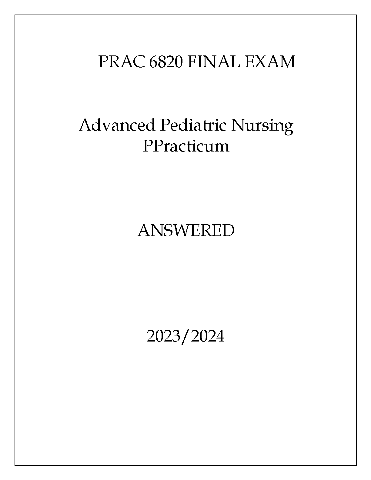 PRAC 6820 Final Exam - Advanced Pediatric Nursing Practicum - 2023/2024 Edition