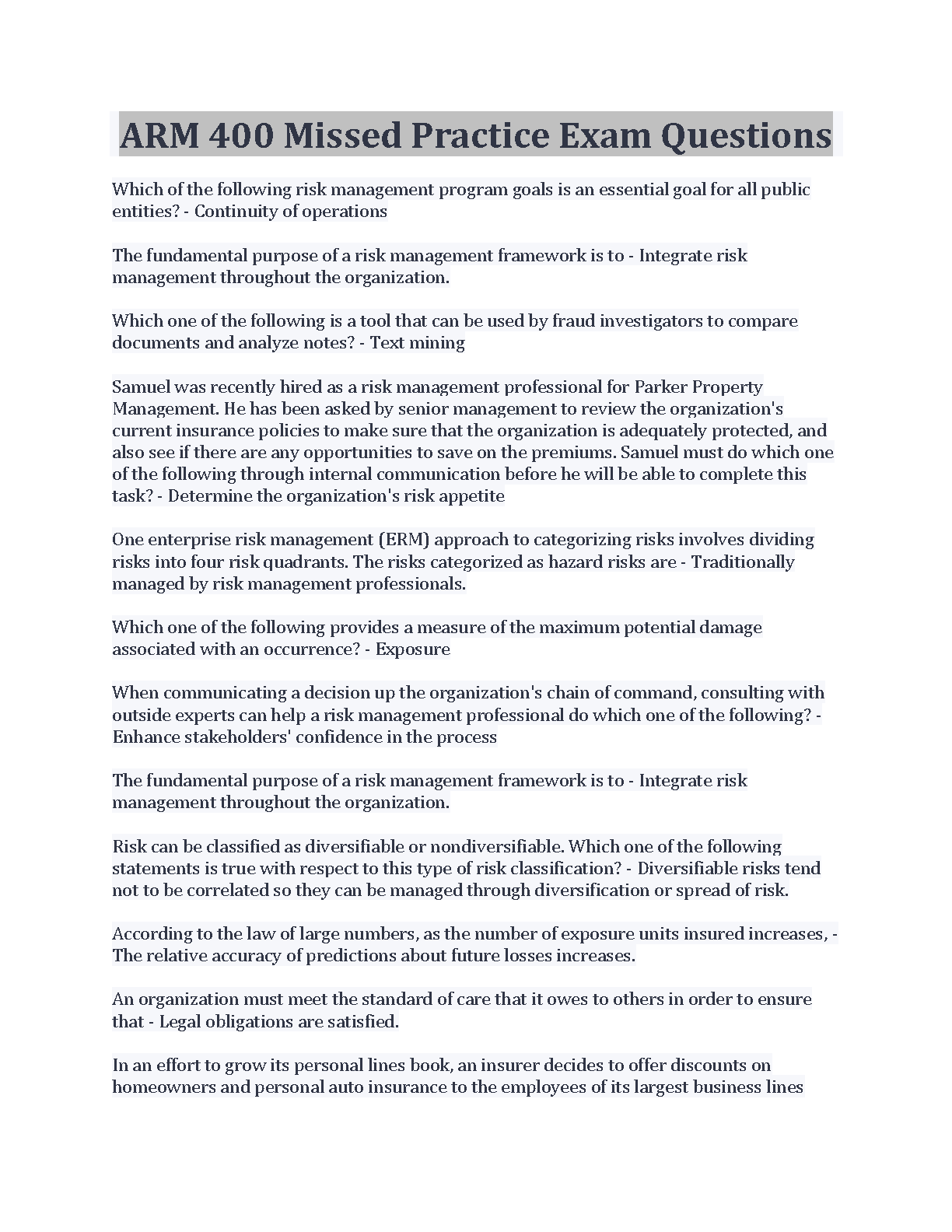 ARM 400 Missed Practice Exam Questions - Latest Edition - Ace Your Exam on the First Attempt