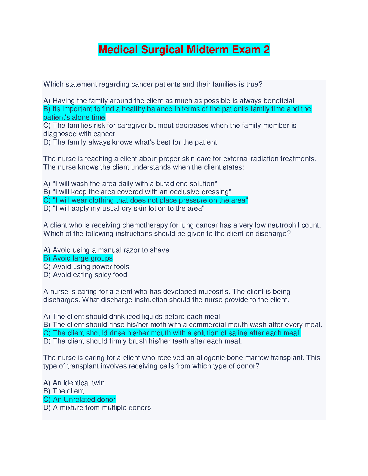 Get ready to conquer your Medical Surgical Midterm Exam with this comprehensive study guide. This resource covers all the essential concepts you need to know to ace your exam and avoid resits.