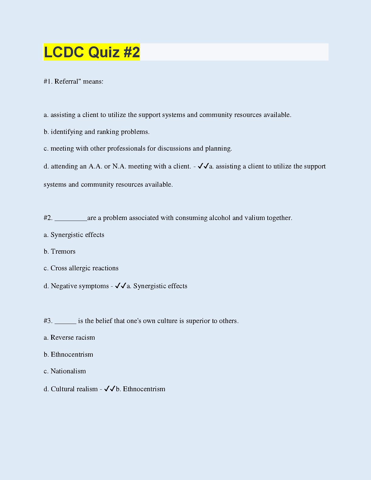 This is a quiz with 3 questions about social work, healthcare and substance abuse. The quiz helps prepare students for LCDC exam.