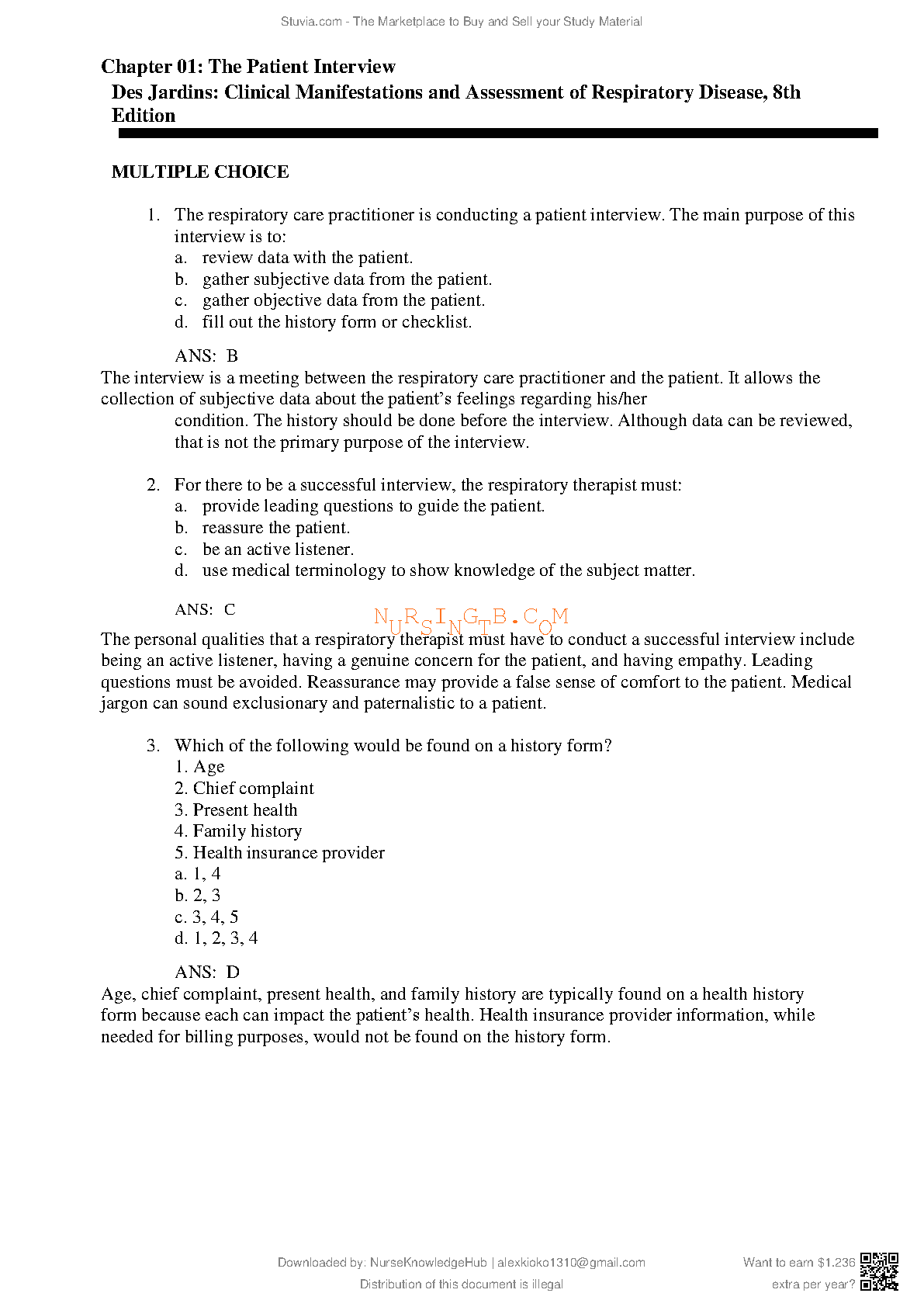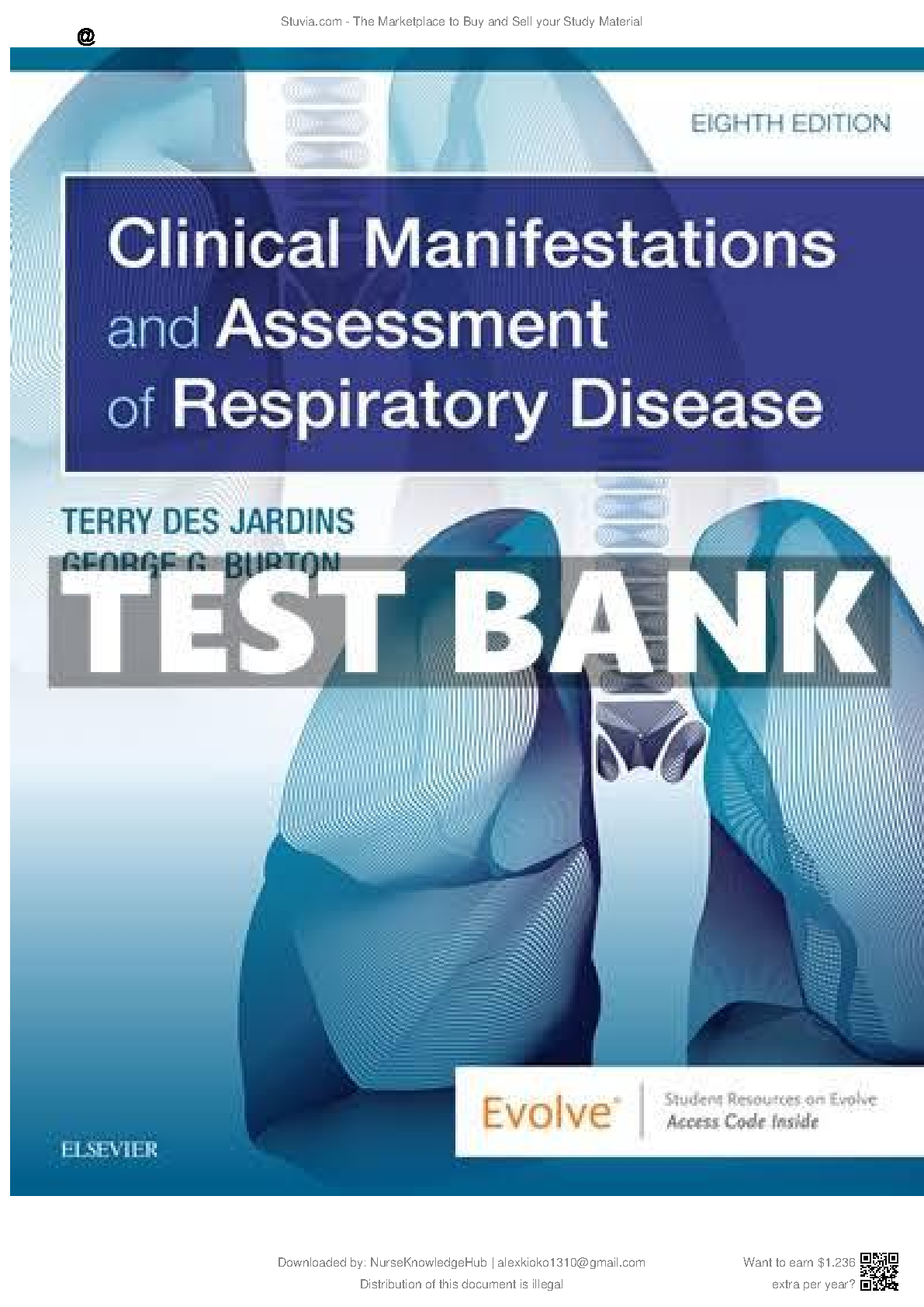This is the Test Bank for the 8th Edition of "Clinical Manifestations and Assessment of Respiratory Disease" written by Terry Des Jardins and George G Burton. This resource provides invaluable support for students preparing for exams on this subject, ensuring a strong understanding of the material and a higher chance of success.