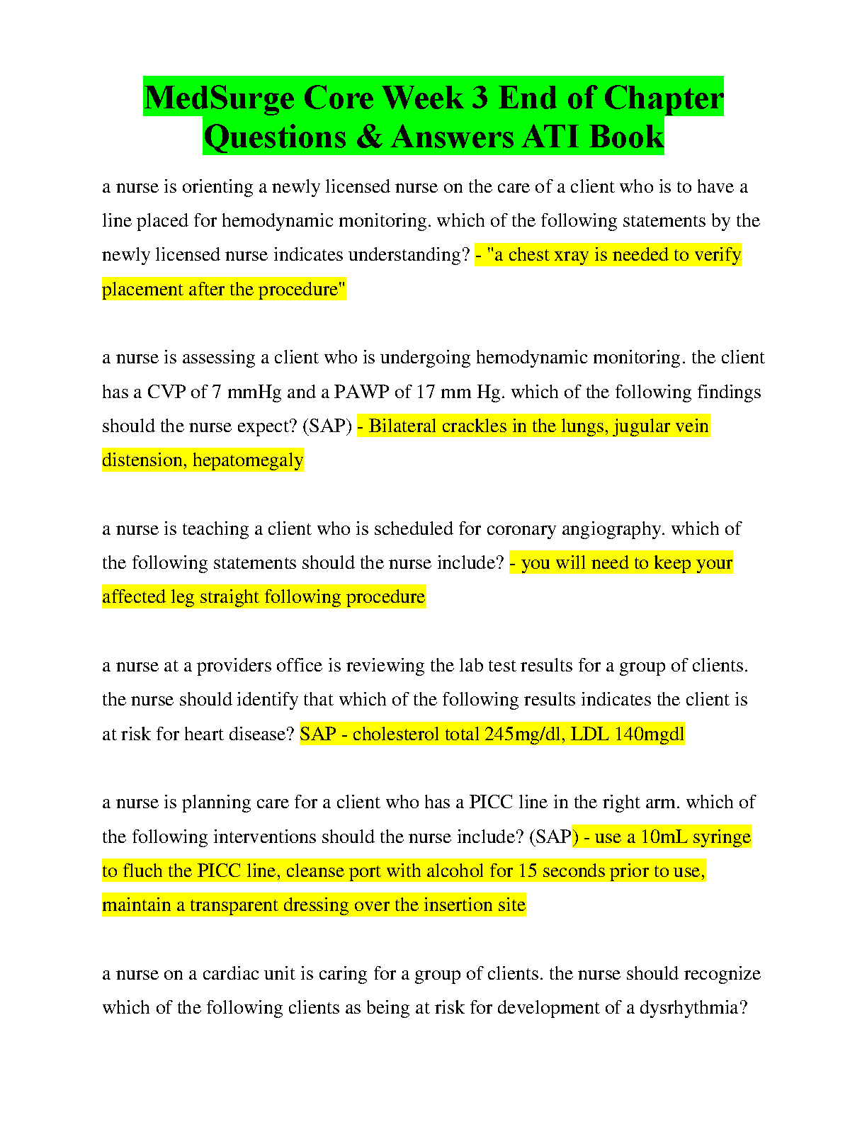 MedSurge Core Week 3 End of Chapter Questions & Answers ATI Book - Edition 2024/2025 - The Ultimate Guide to Ace Your Exam on First Attempt