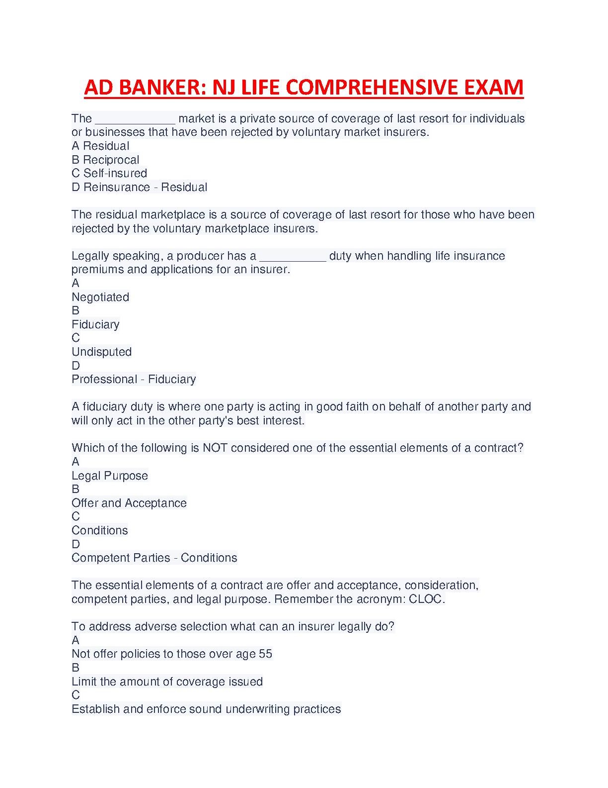 Prepare for your AD Banker: NJ Life Comprehensive Exam with our comprehensive study guide, designed to help you pass on the first attempt and avoid resits. This resource includes essential concepts, practice questions, and exam tips, making it the perfect companion for students aiming for success.