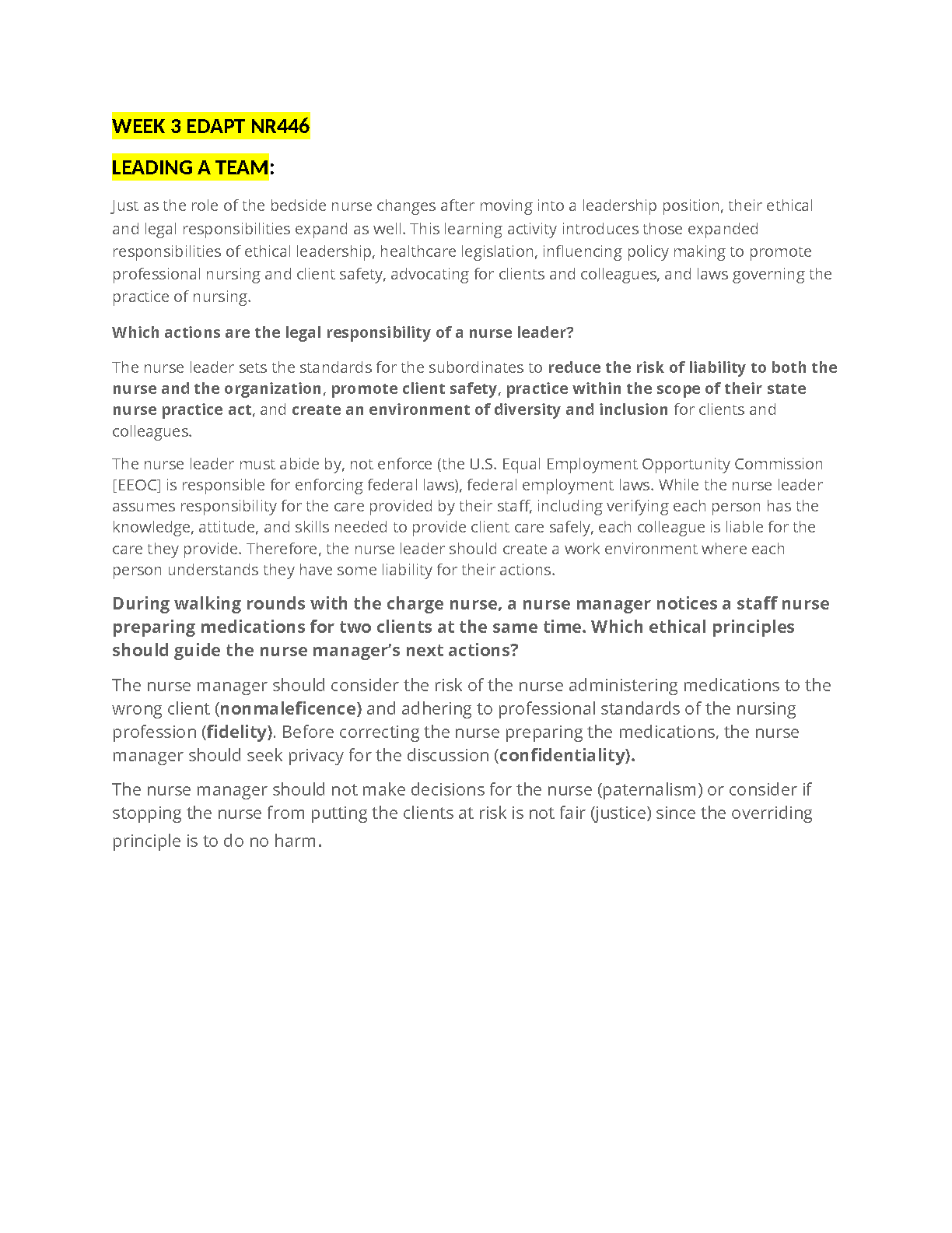 This resource is essential for nursing students seeking to excel in their leadership roles. It covers essential ethical principles that guide decision-making in complex healthcare settings. This resource will help you pass your exams on the first attempt.
