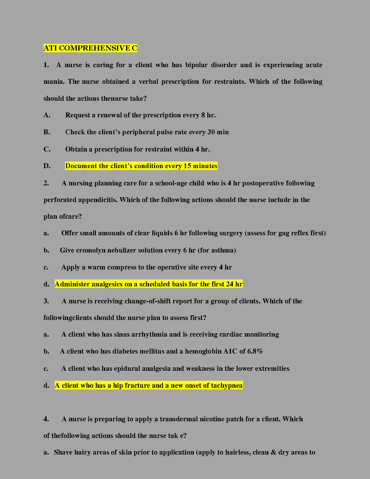 ATI Comprehensive Exam Study Guide 2024/2025 - Master NCLEX with Ease