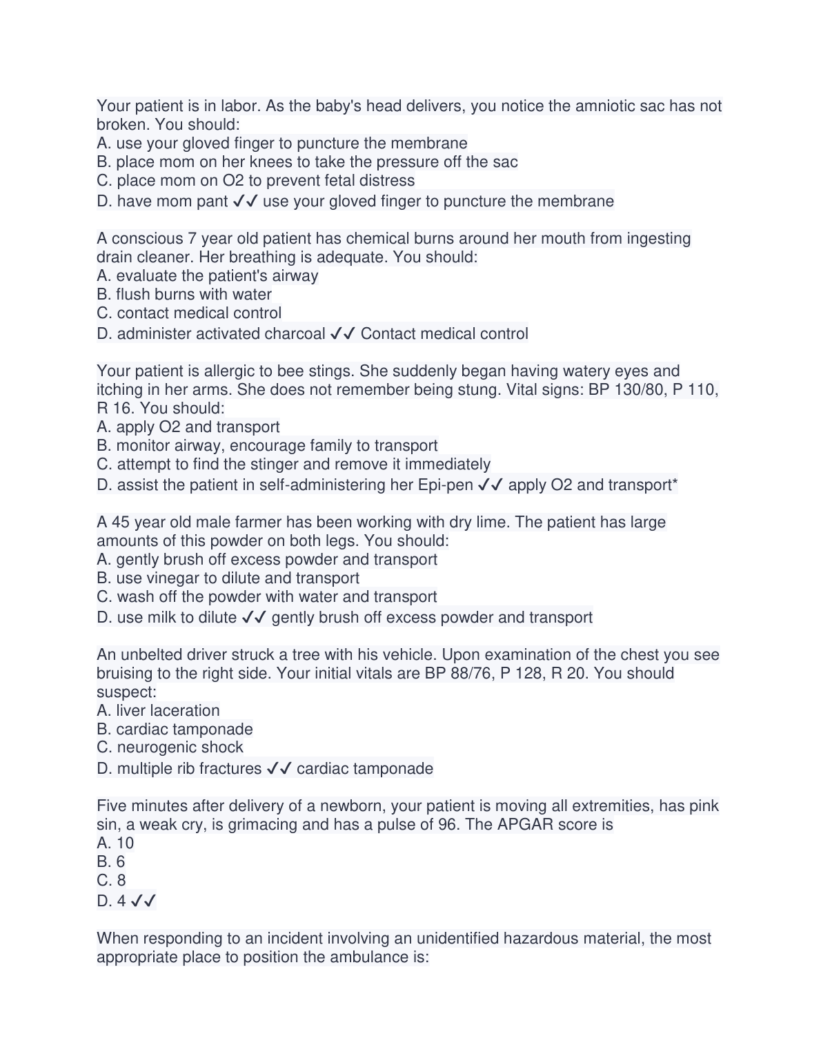 EMT FISDAP FINAL PRACTICE EXAM Questions and Answers (2022/2023) (Verified Answers) RATED A+