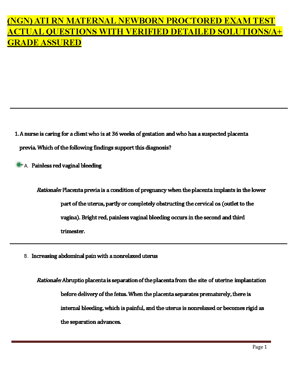 Get access to a comprehensive collection of actual Maternal Newborn Proctored Exam Test questions with verified detailed solutions. This resource will help you prepare effectively for your exam and achieve a passing score on your first attempt, ensuring you avoid any resits.