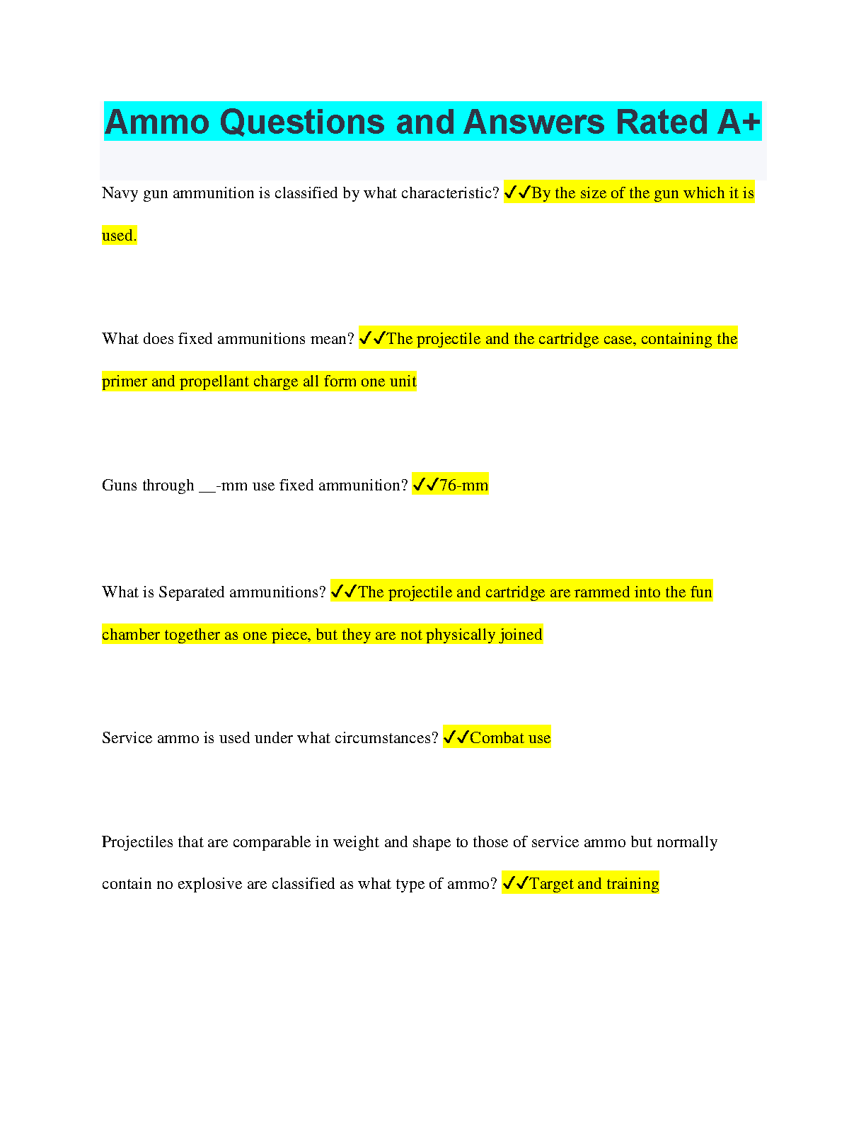 Ammo Questions and Answers Rated A+ - Study Guide for 2024/2025 Exam Success