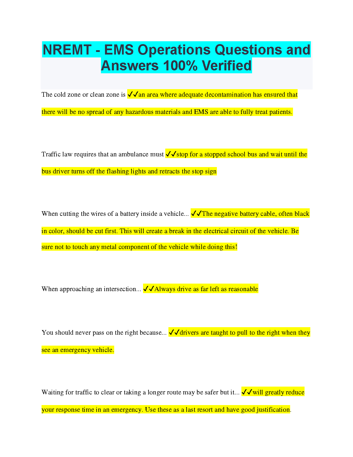 NREMT - EMS Operations Questions and Answers - 100% Verified