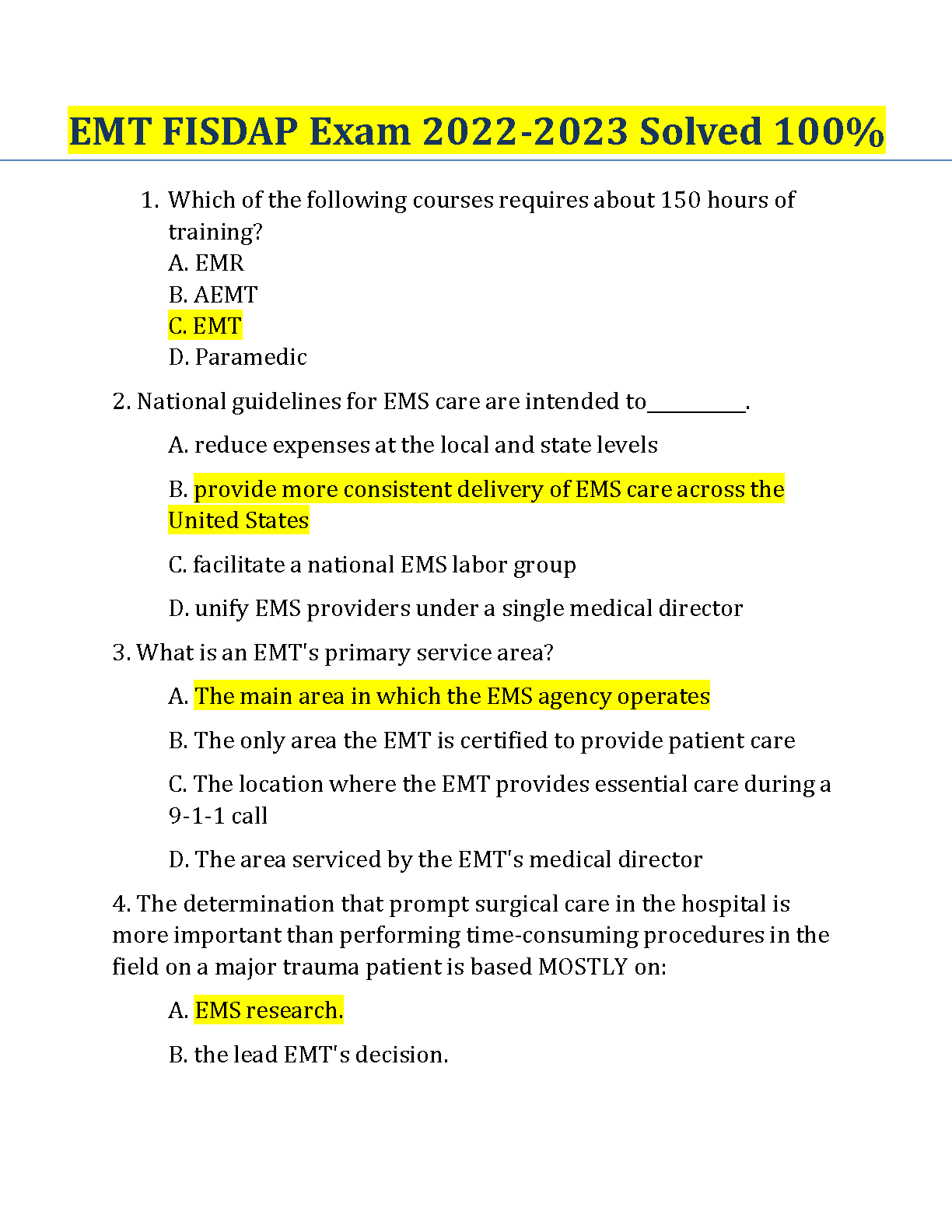 EMT FISDAP Exam WITH ANSWERS 2022/2023 Solved 100%. DOWNLOAD on www.hackedexams.com INSTANTLY.