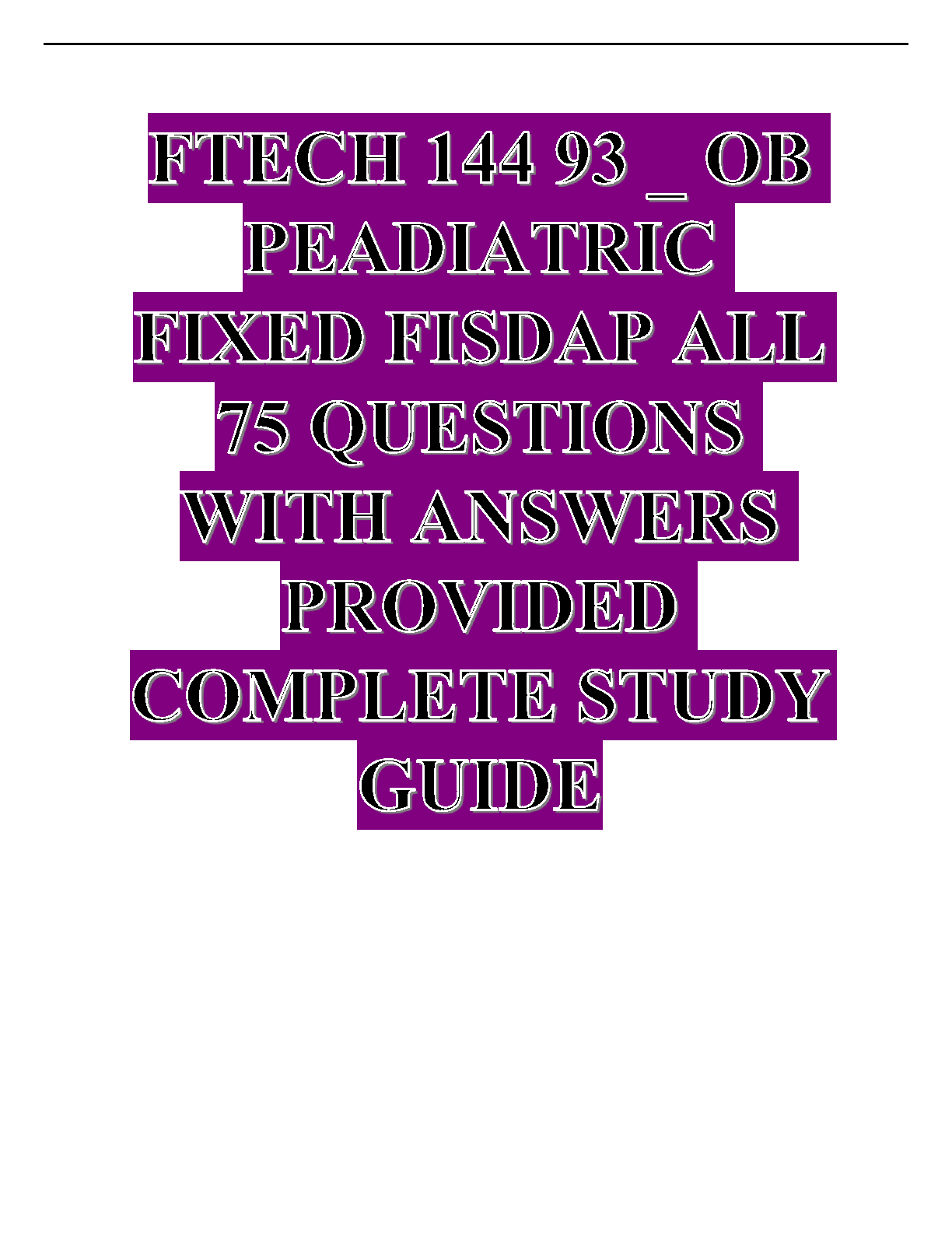 FTECH 144 93_OB PEADIATRIC FIXED FISDAP ALL 75 QUESTIONS WITH ANSWERS COMPLETE STUDY GUIDE 2023