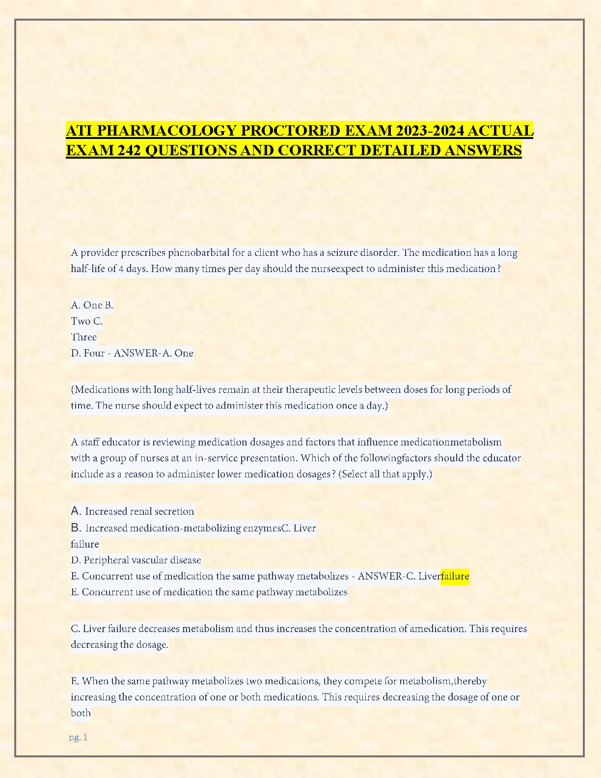 This comprehensive study guide is designed to help you ace your ATI Pharmacology Proctored Exam on the first try. It features 242 actual exam questions with detailed, accurate answers to boost your confidence and understanding of key concepts.