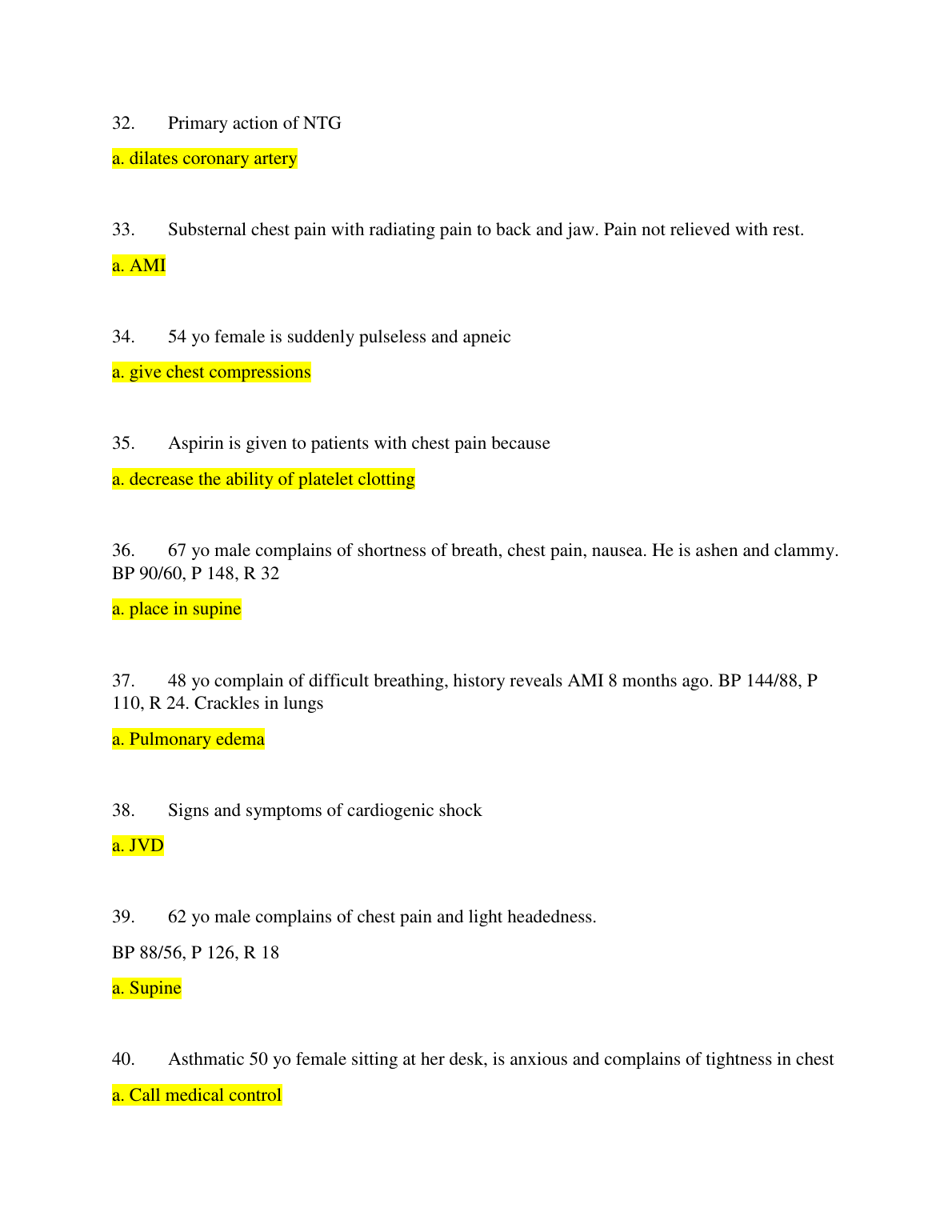Cardiology Fisdap Questions with Answers Provided Complete Study Guide 2023. DOWNLOAD on www.hackedexams.com INSTANTLY.